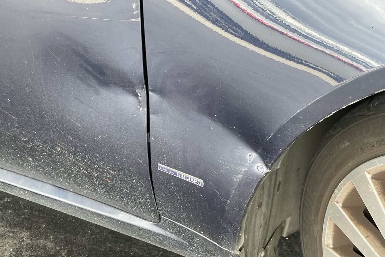 • Medium Dent on Panel above front RH wheel onto driver door