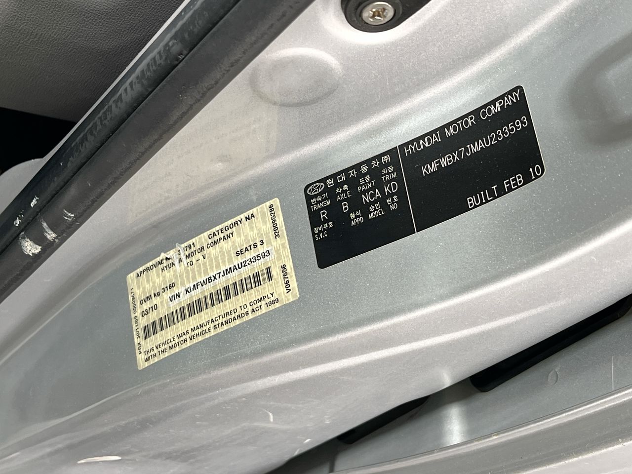 • VIN: KMFWBX7JMAU233593