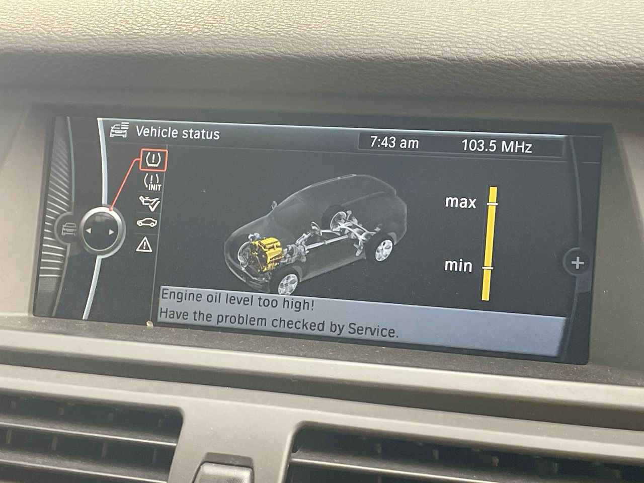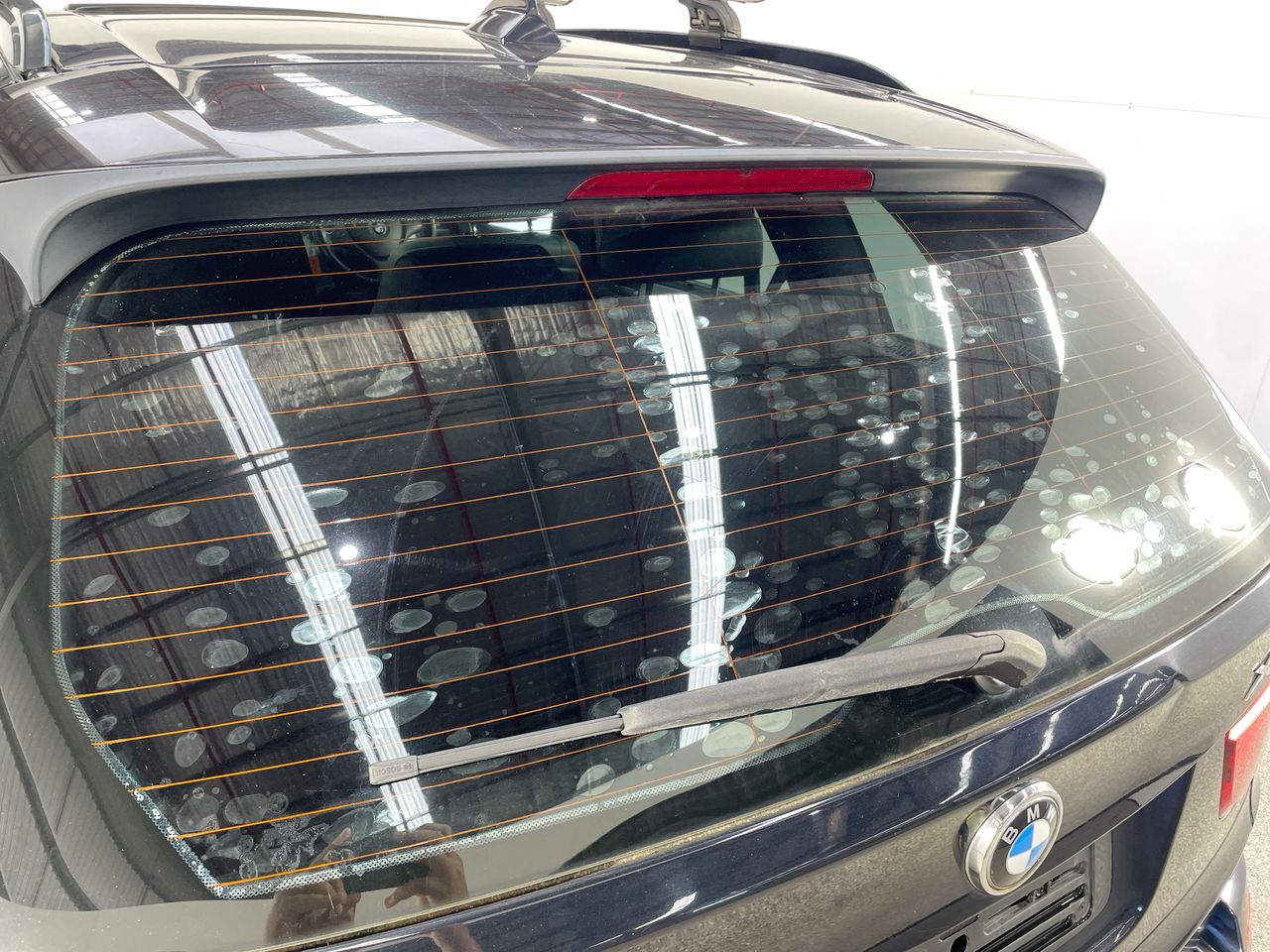 • Interior: Window tint bubbling on multiple windows, Engine oil level too high and washer fluid low warning on dash, Exterior: Dislodged rear bumper