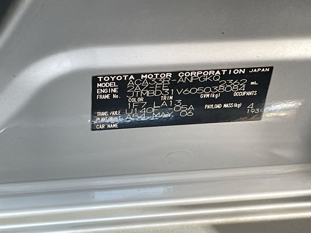 | Part of Sale | 2006 Toyota Rav 4 Cruiser L ACA33R Automatic Wagon | ||||||||||||||