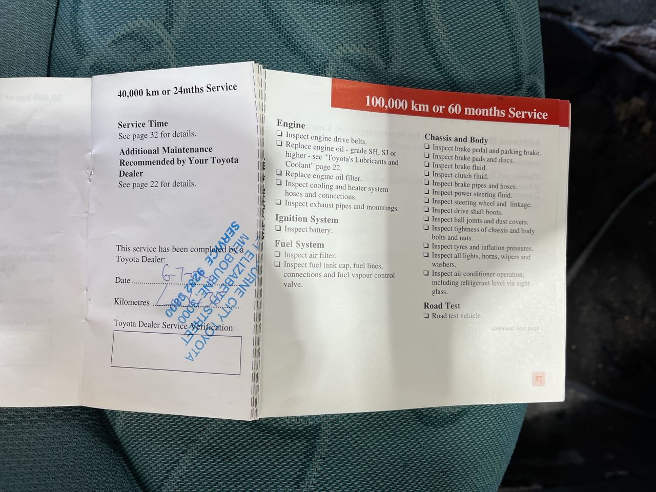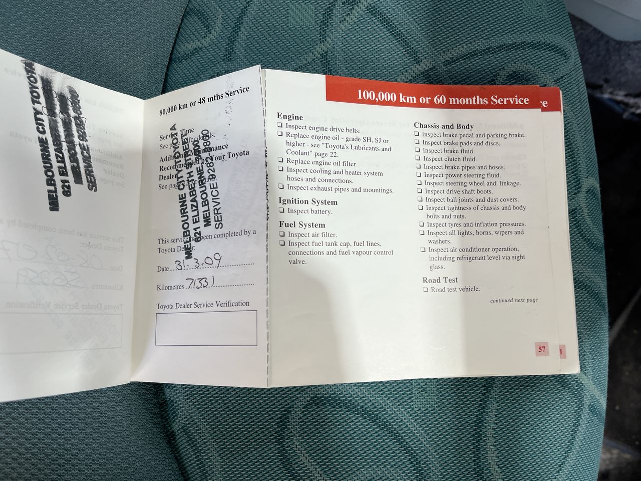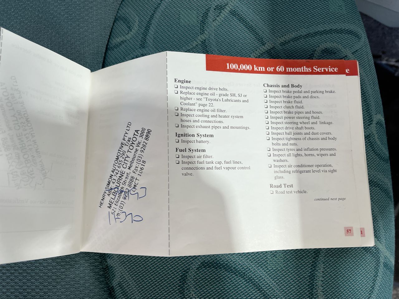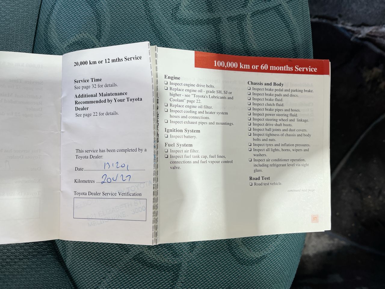 • Dents or marks on body consistent with age and kilometres.