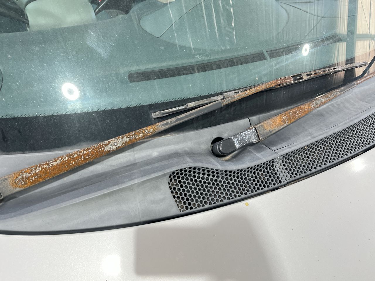 • Comment: Spare tyre is on the front passenger side. Corrosion visible on wipers.