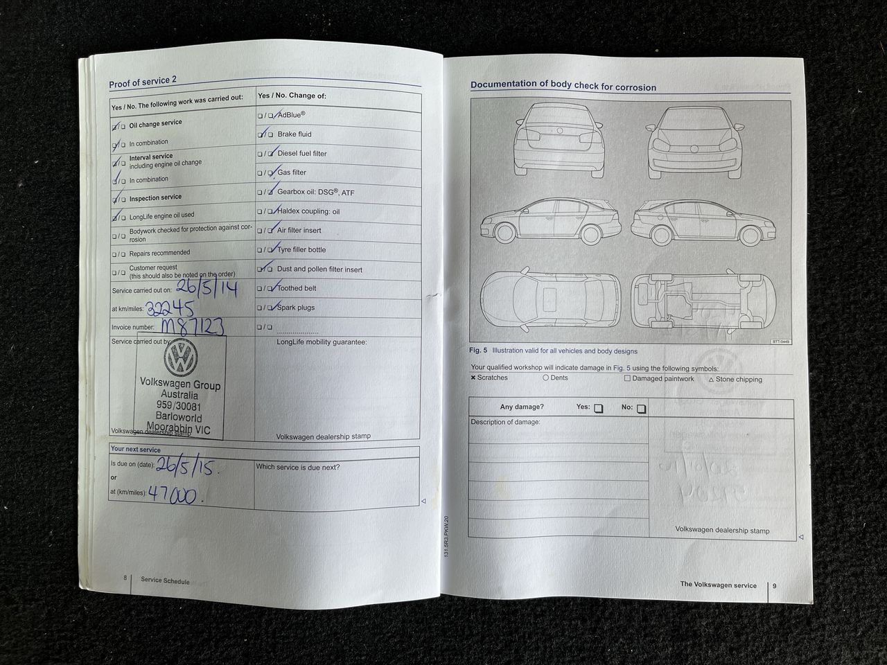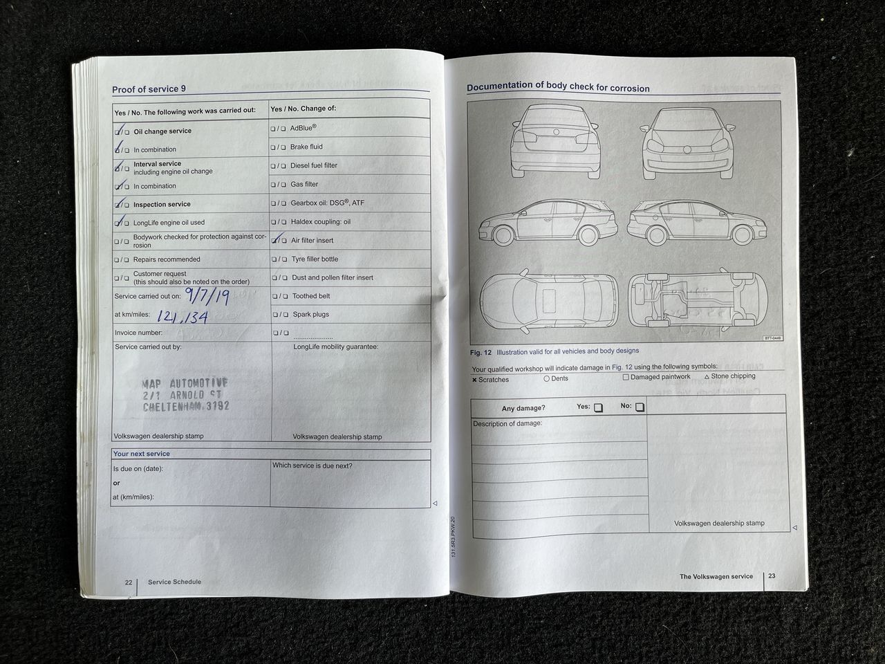 • Dents or marks on body consistent with age and kilometres.