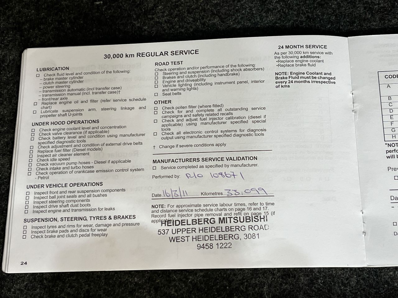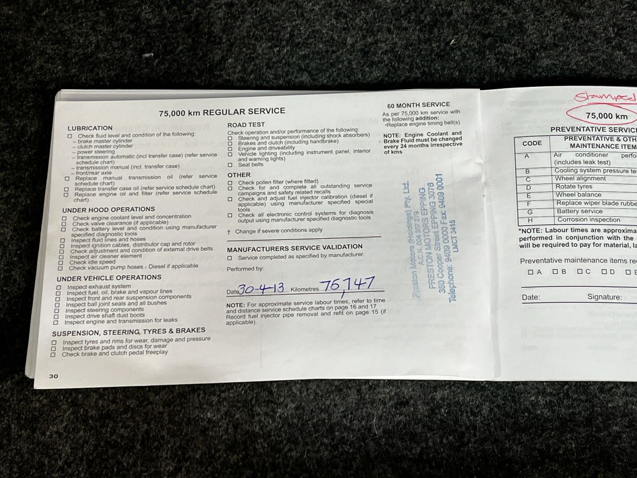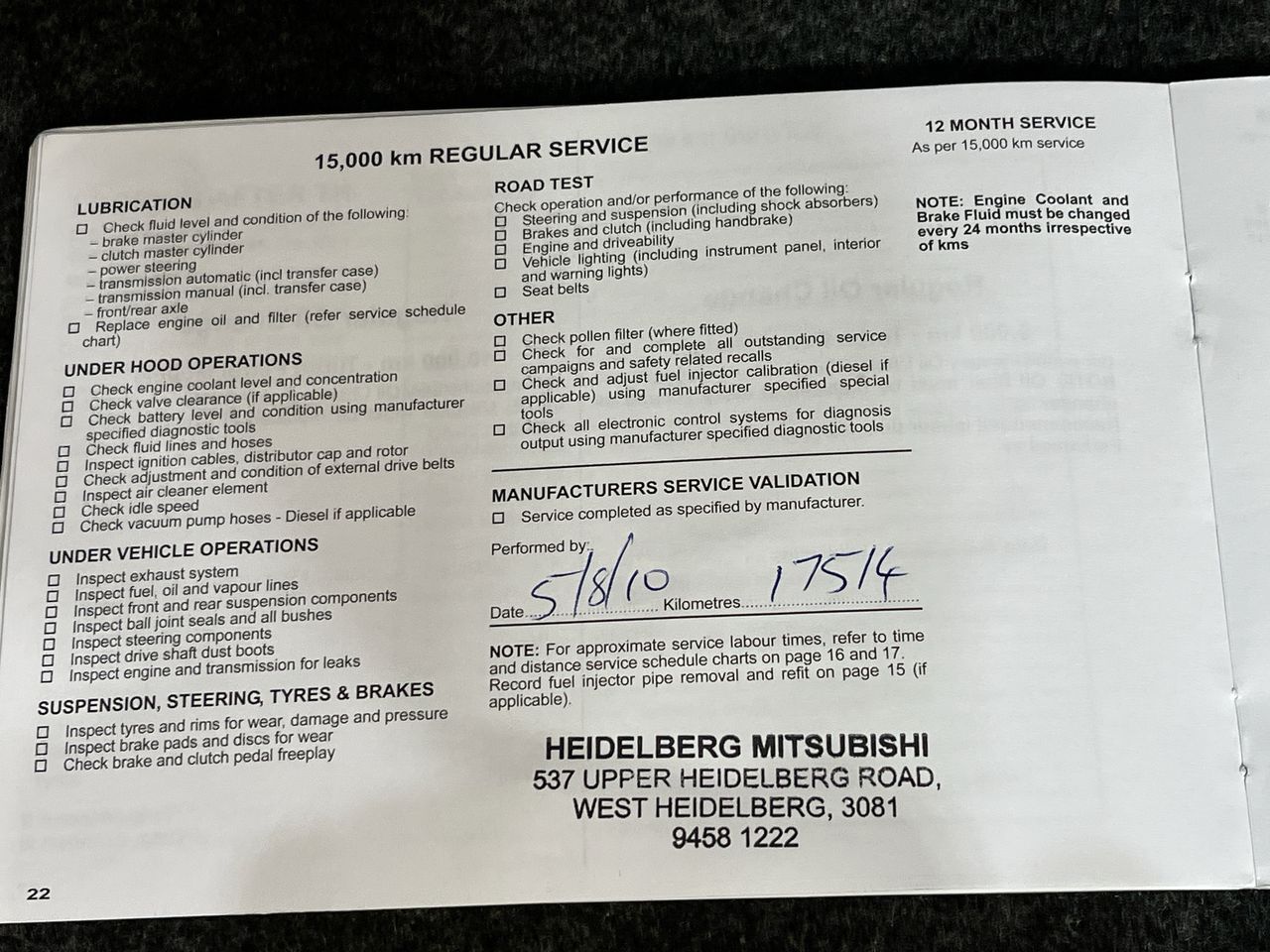 • Dents or marks on body consistent with age and kilometres.