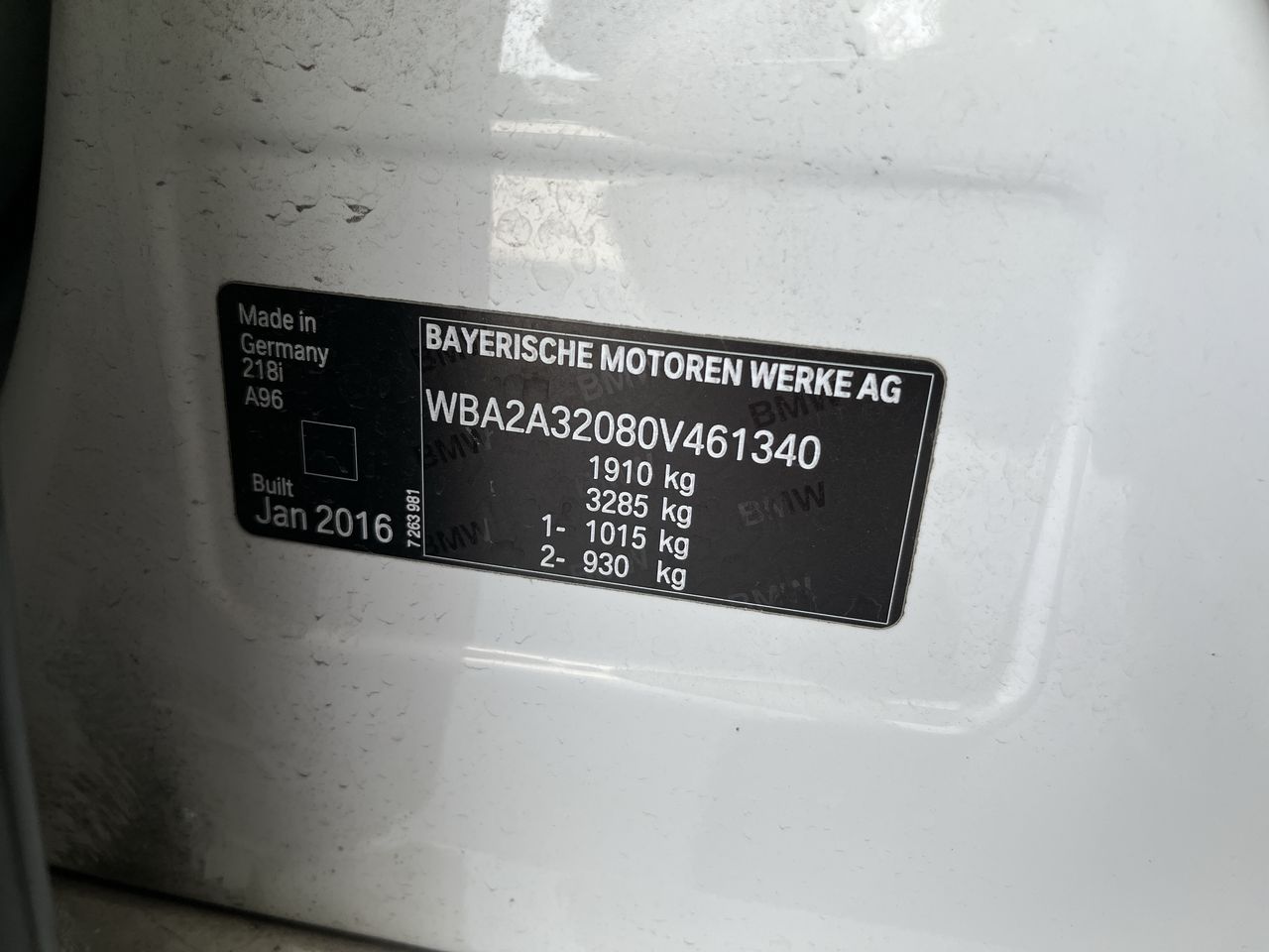 • VIN: WBA2A32080V461340