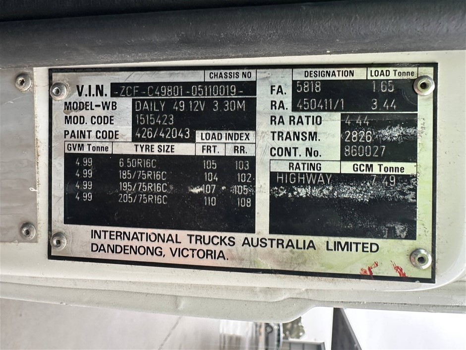 • VIN: ZCFC4980105110019