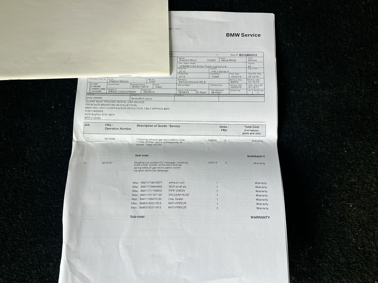 | Part of Sale | 2014 BMW 2 Series Active Tour 218d F45 Turbo Diesel Auto | ||||||||||||||