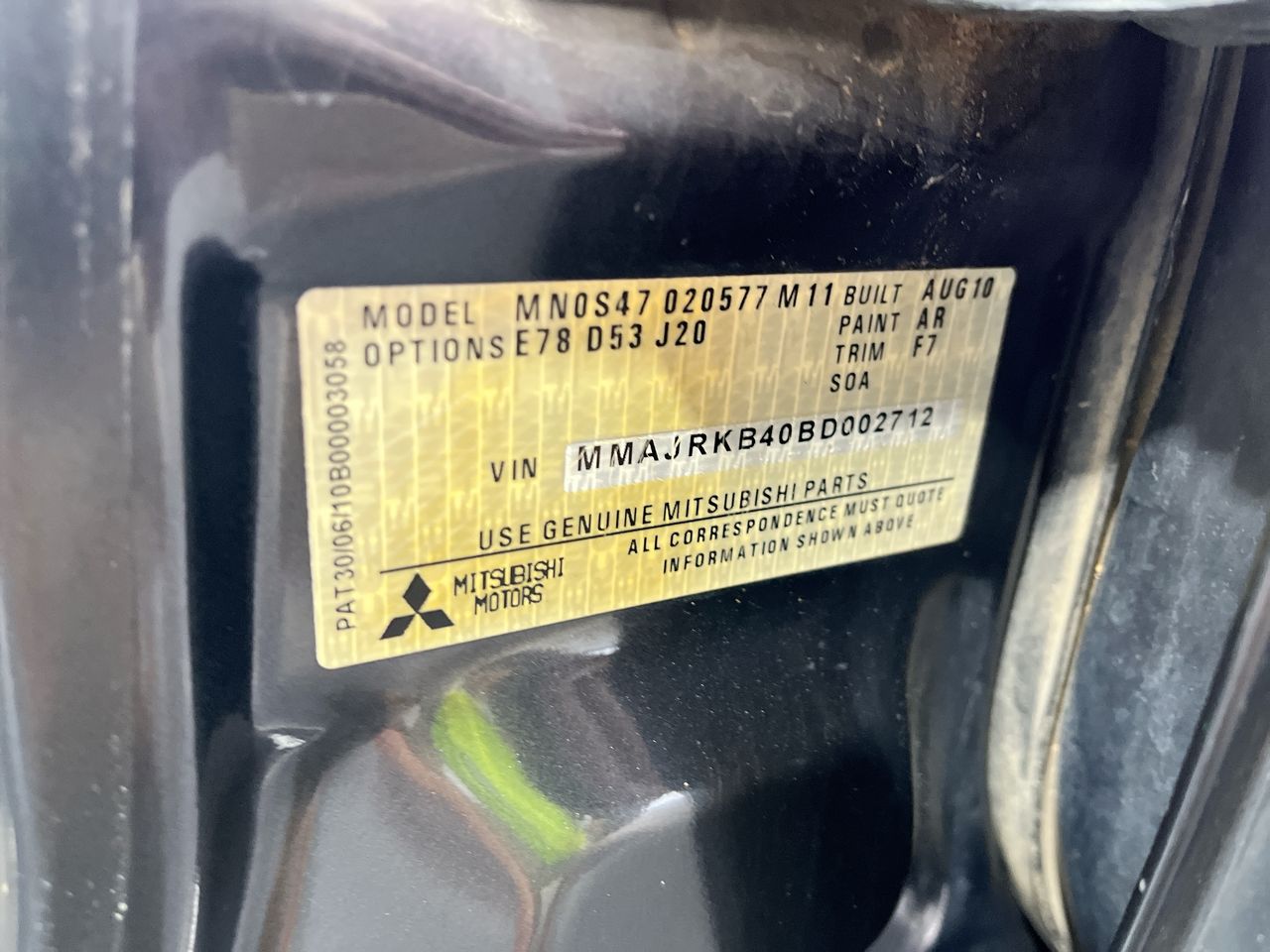 (SN:MMAJRKB40BD002712) (101882-95)