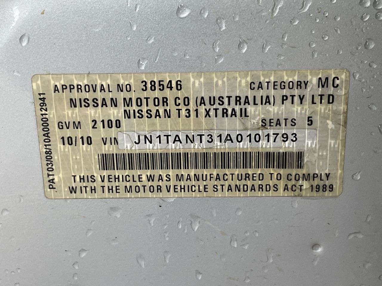 • VIN: JN1TANT31A0101793