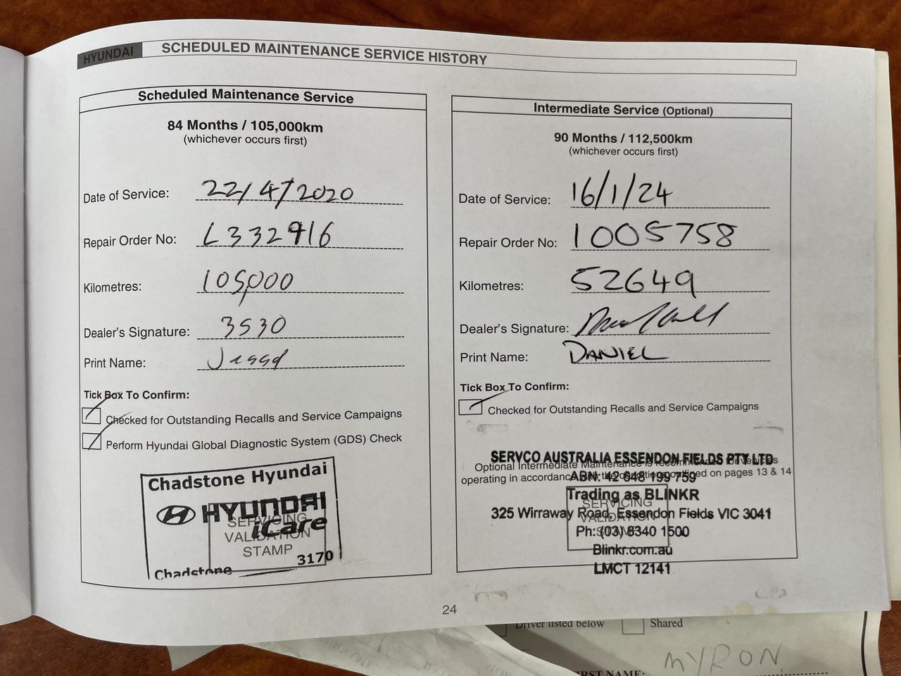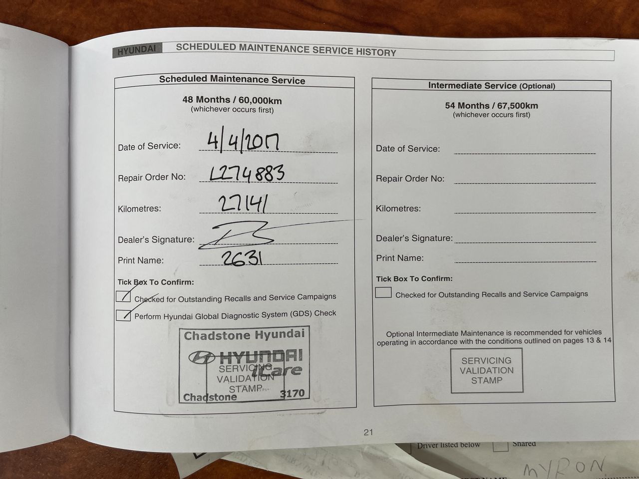 • Service History: Yes