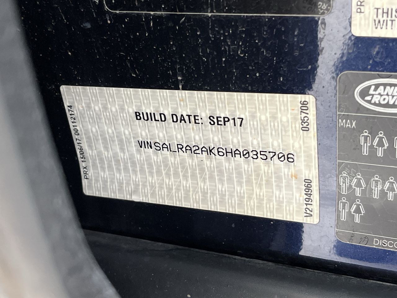 • VIN: SALRA2AK6HA035706