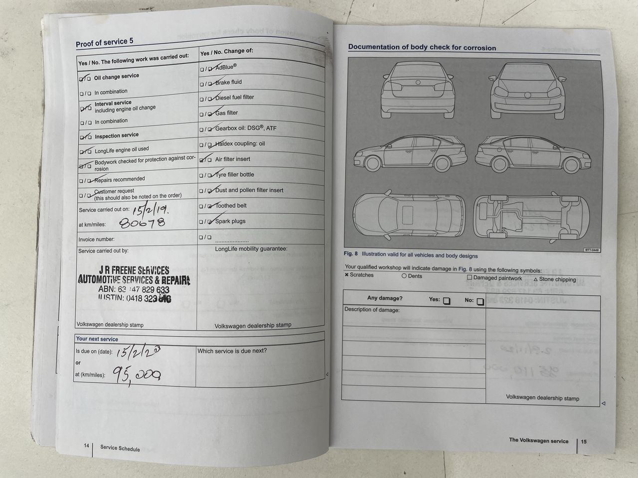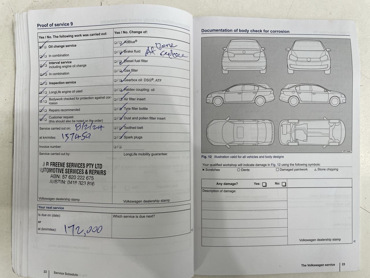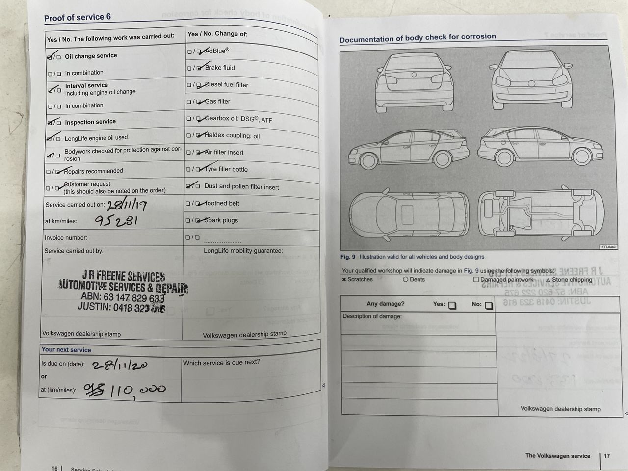 • Dents or marks on body consistent with age and kilometres.