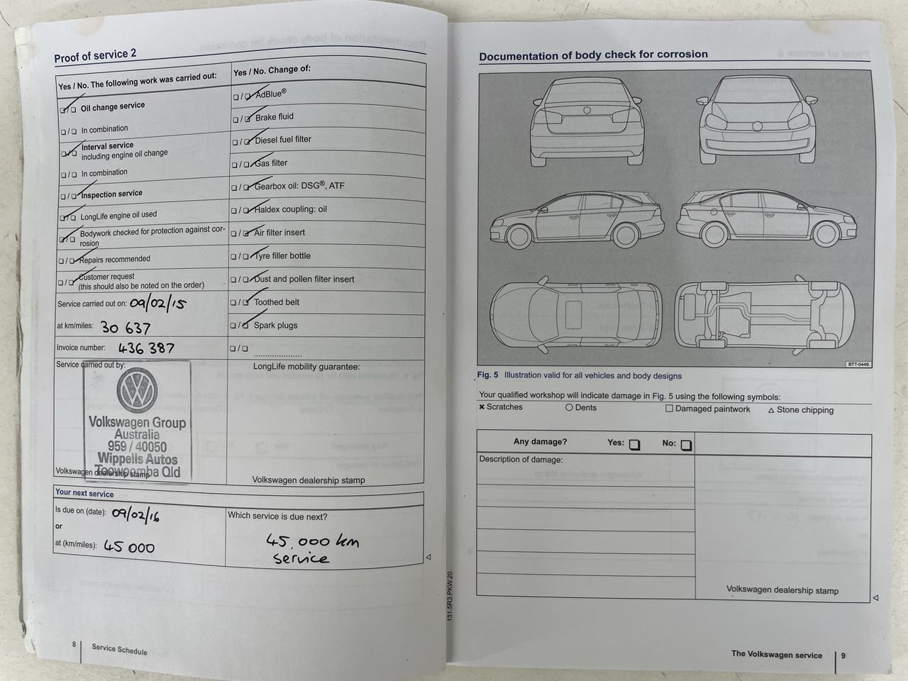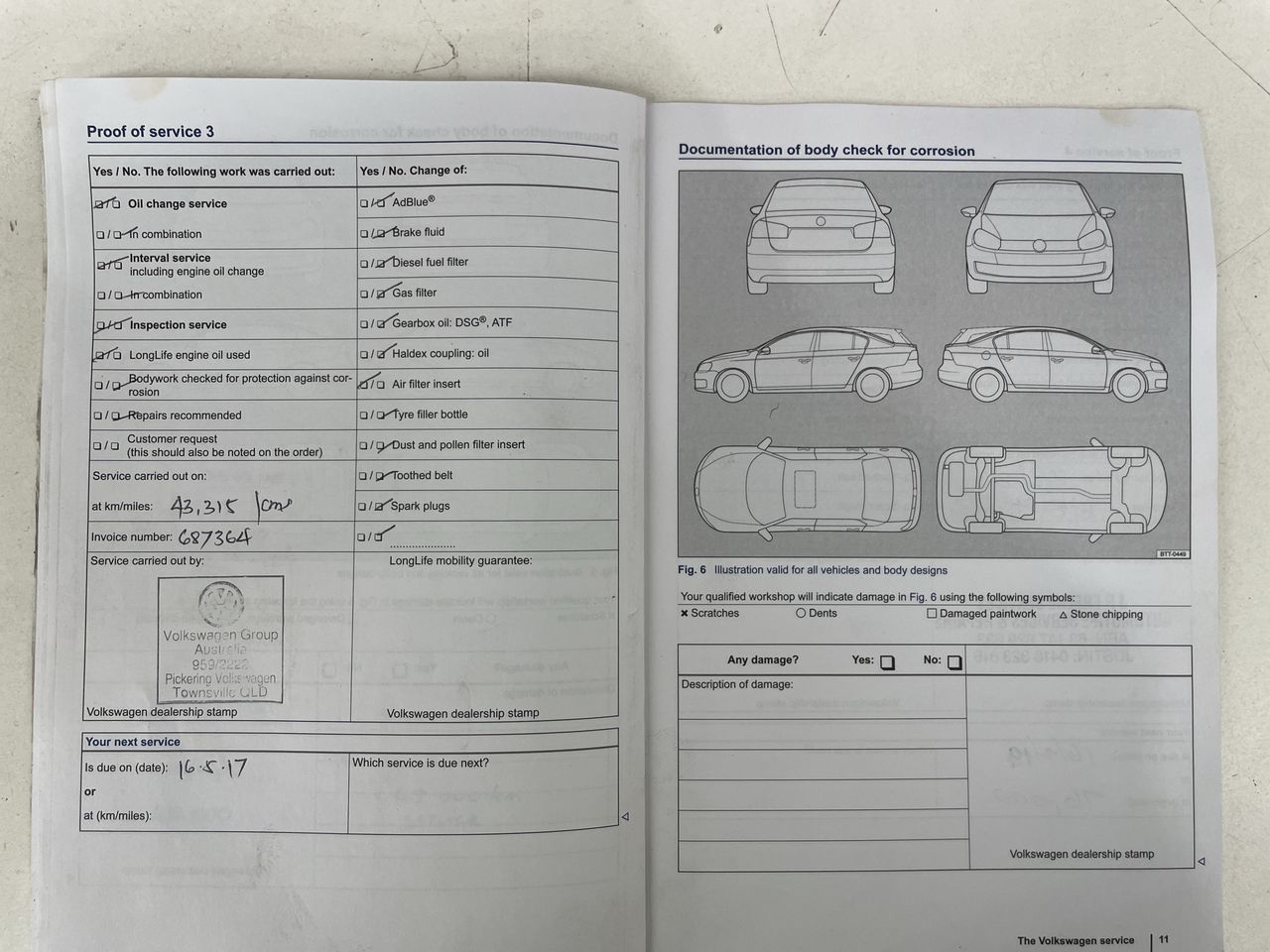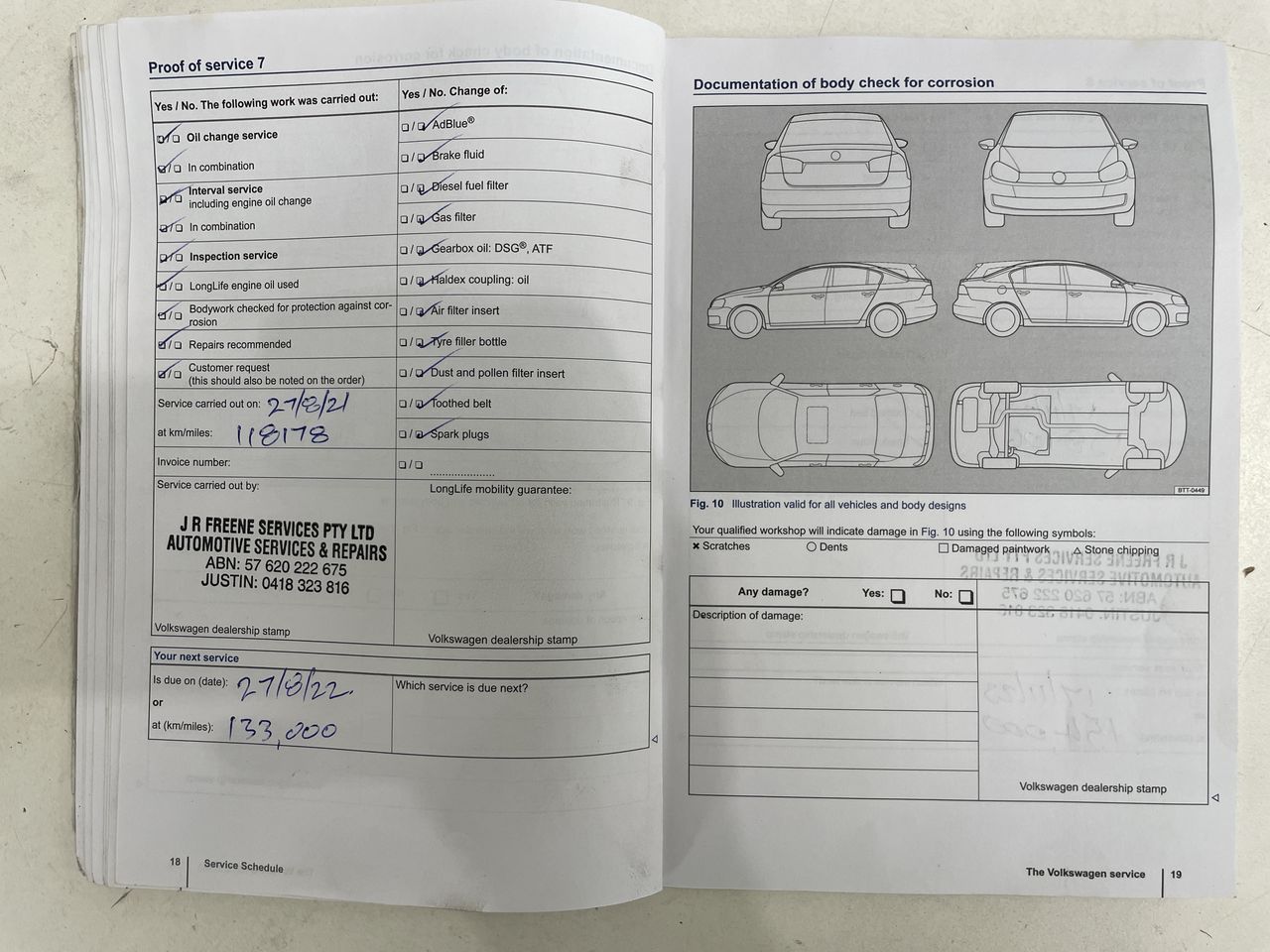 • Dents or marks on body consistent with age and kilometres.