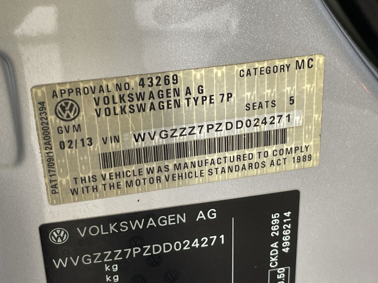 • VIN: WVGZZZ7PZDD024271