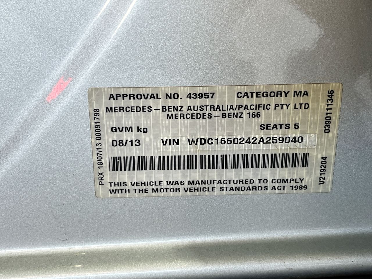 • VIN: WDC1660242A259040