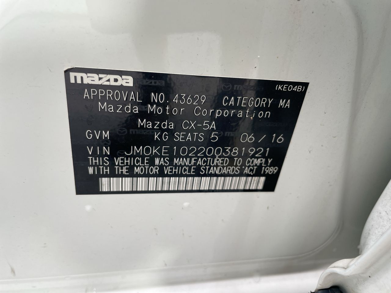 • VIN: JM0KE102200381921