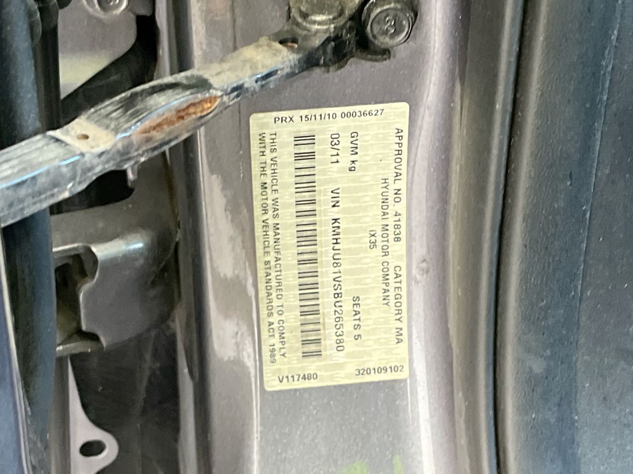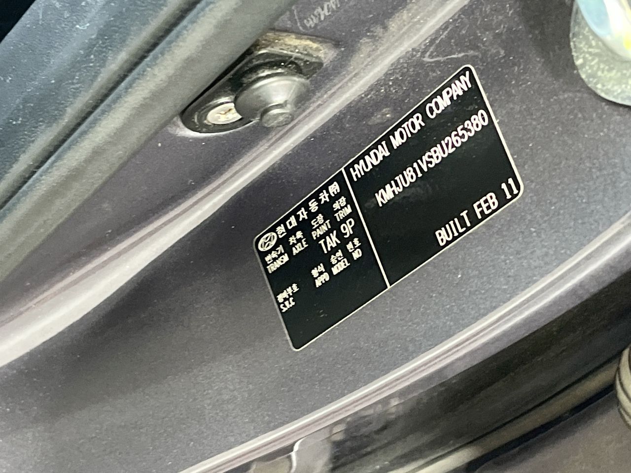 • VIN: KMHJU81VSBU265380