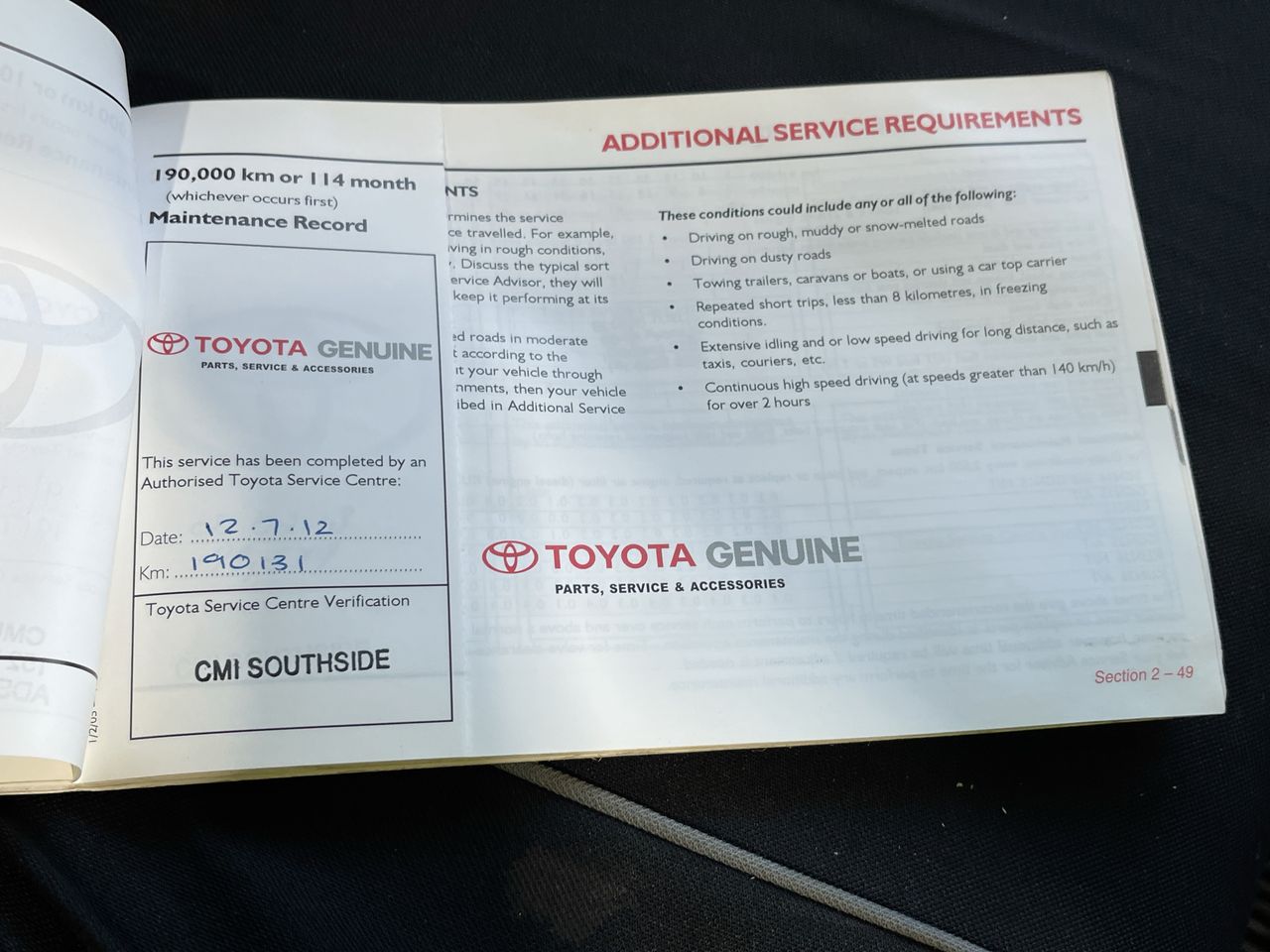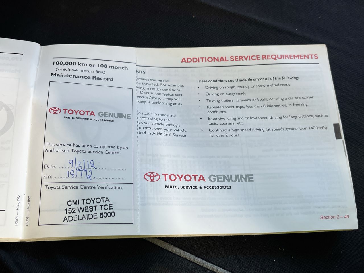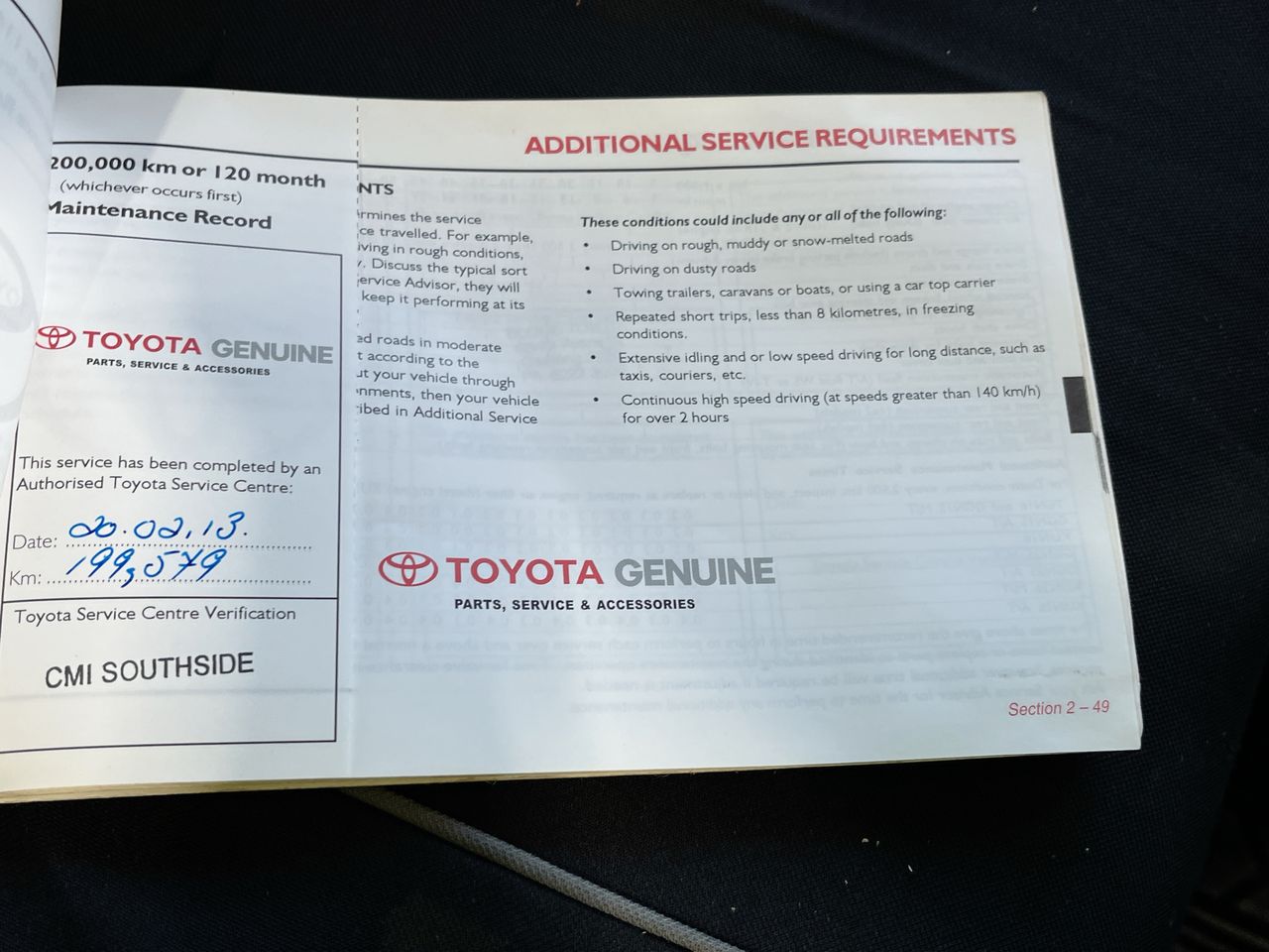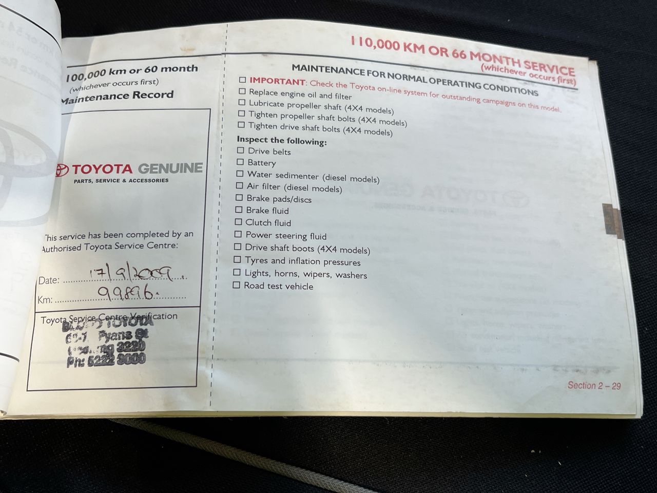 • Dents or marks on body consistent with age and kilometres.