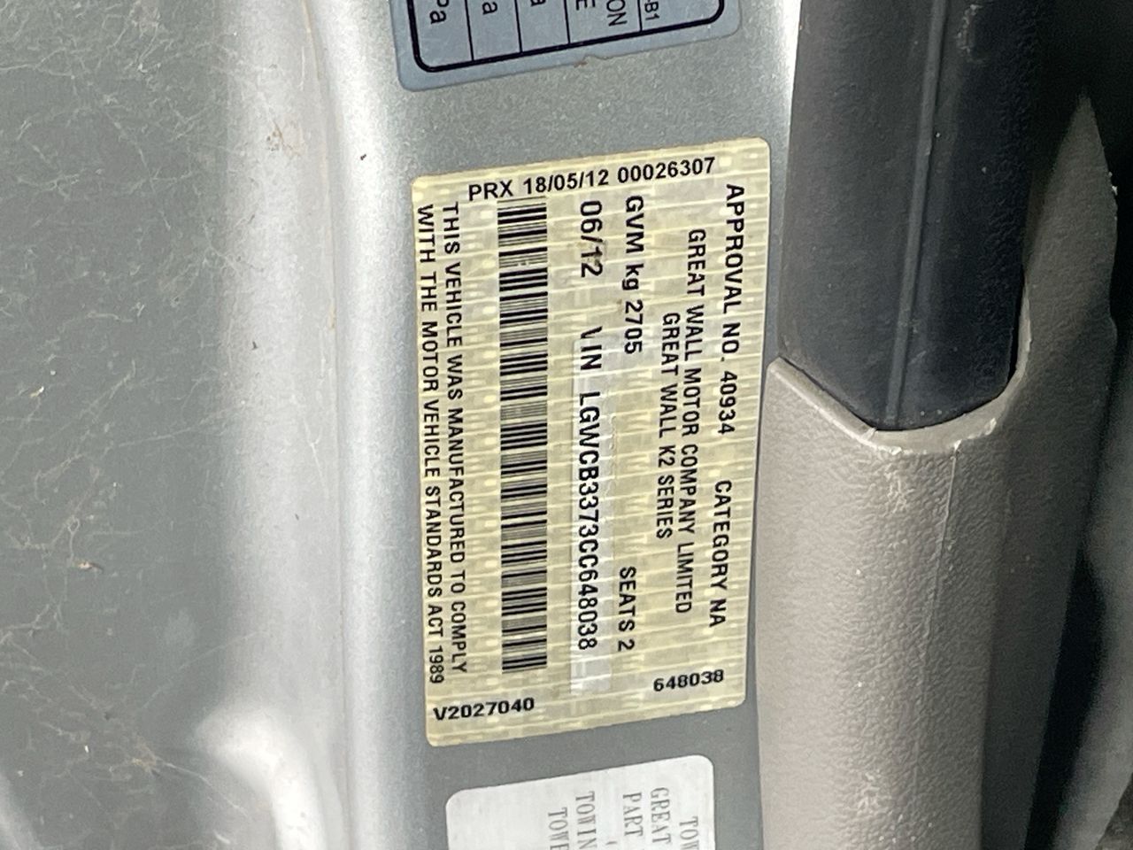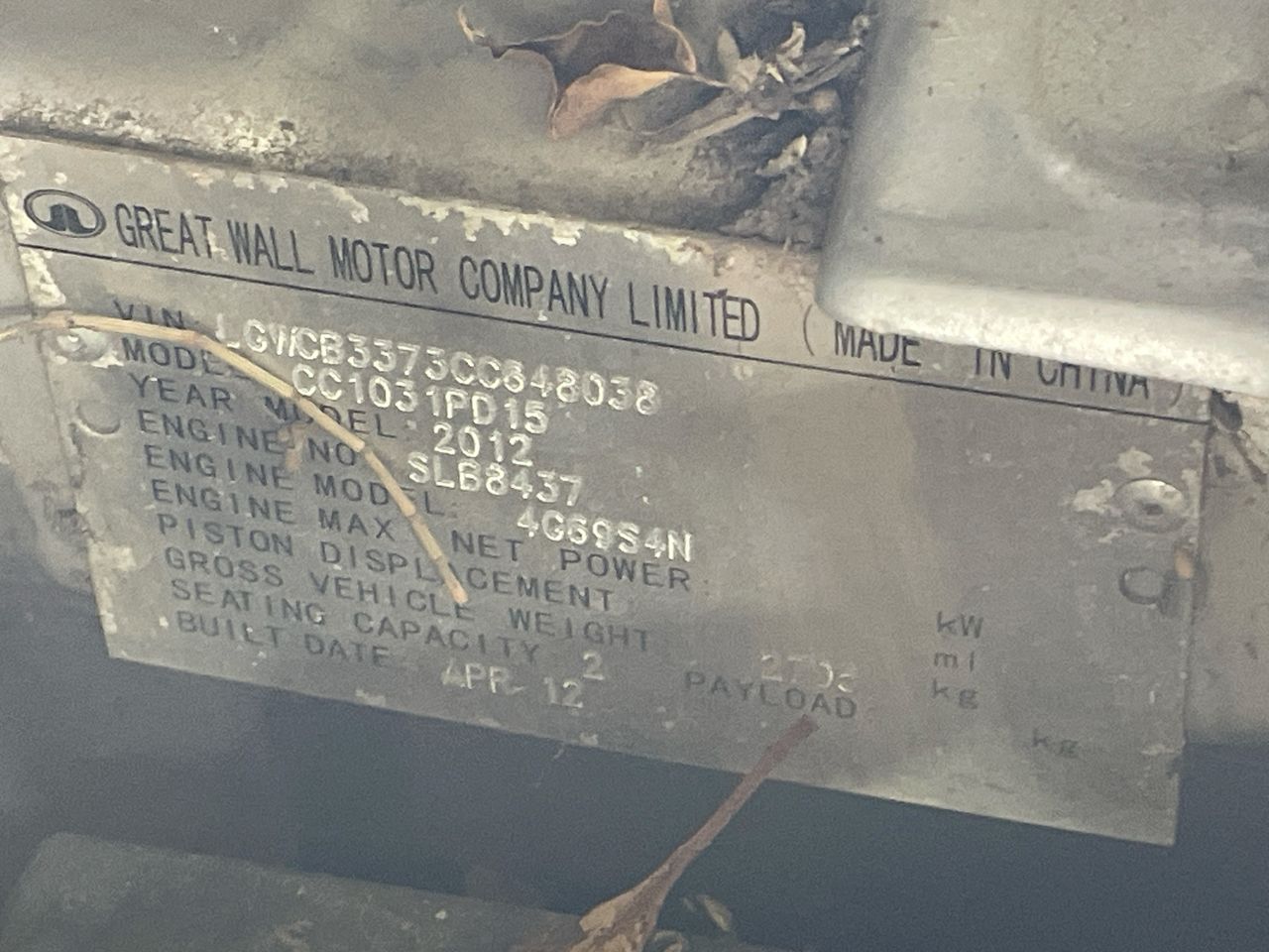 | Part of Sale | 2012 Great Wall V240 4X2 Manual Cab Chassis | ||||||||||||||