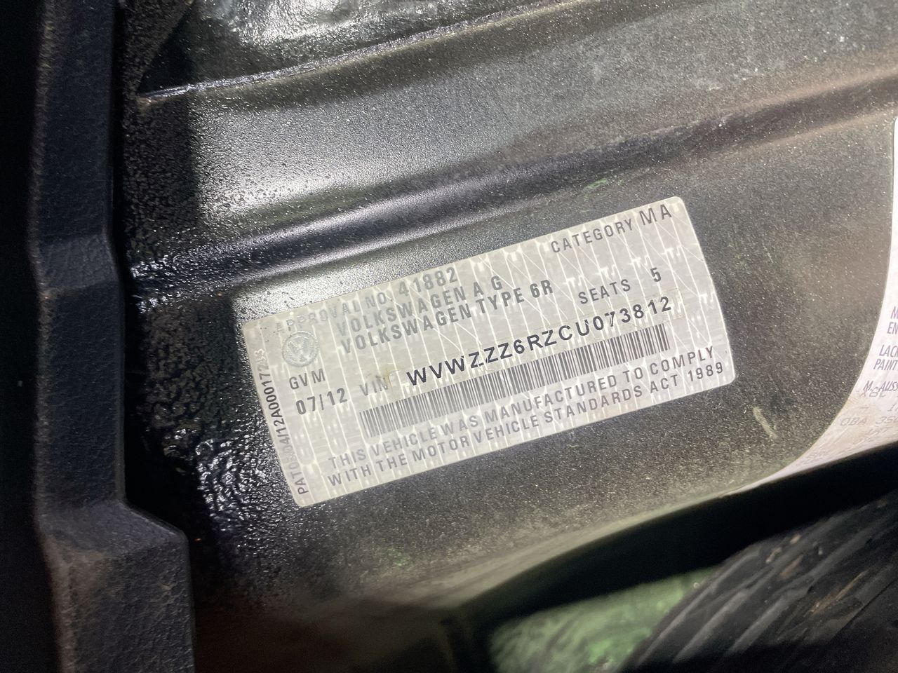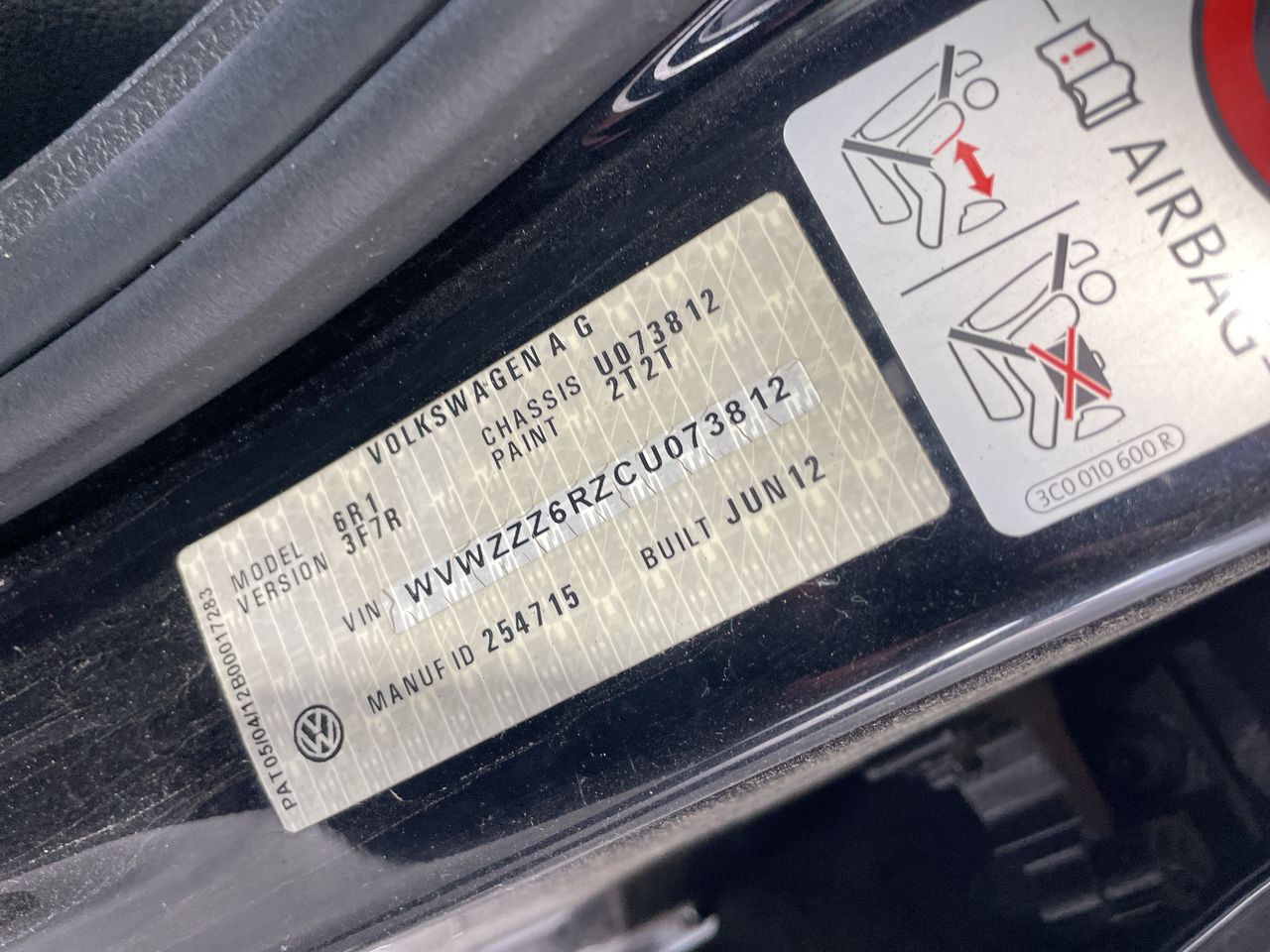 • VIN: WVWZZZ6RZCU073812