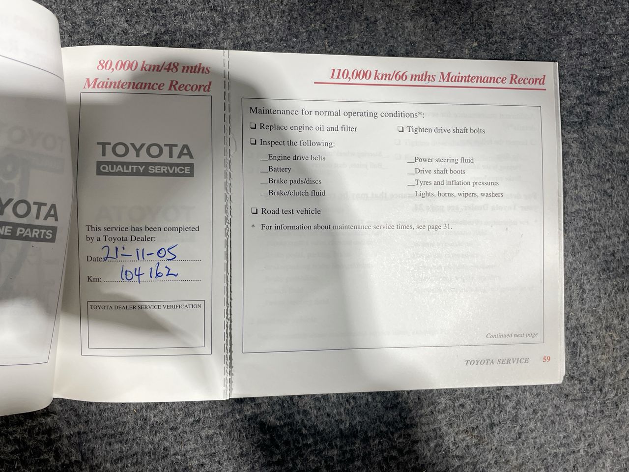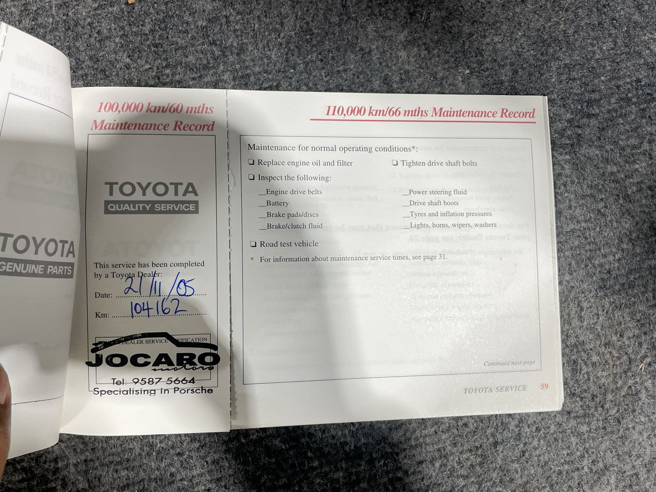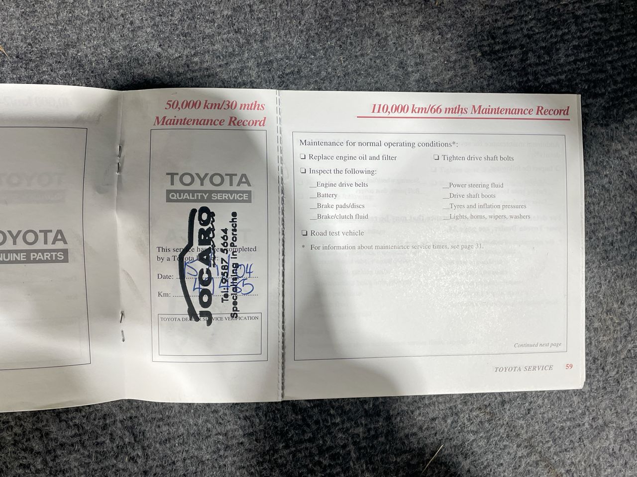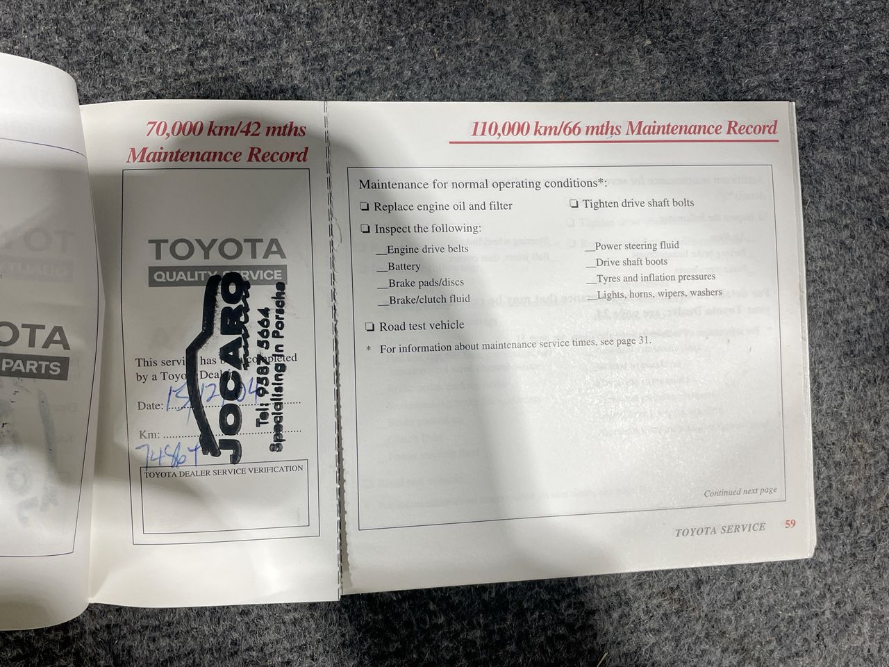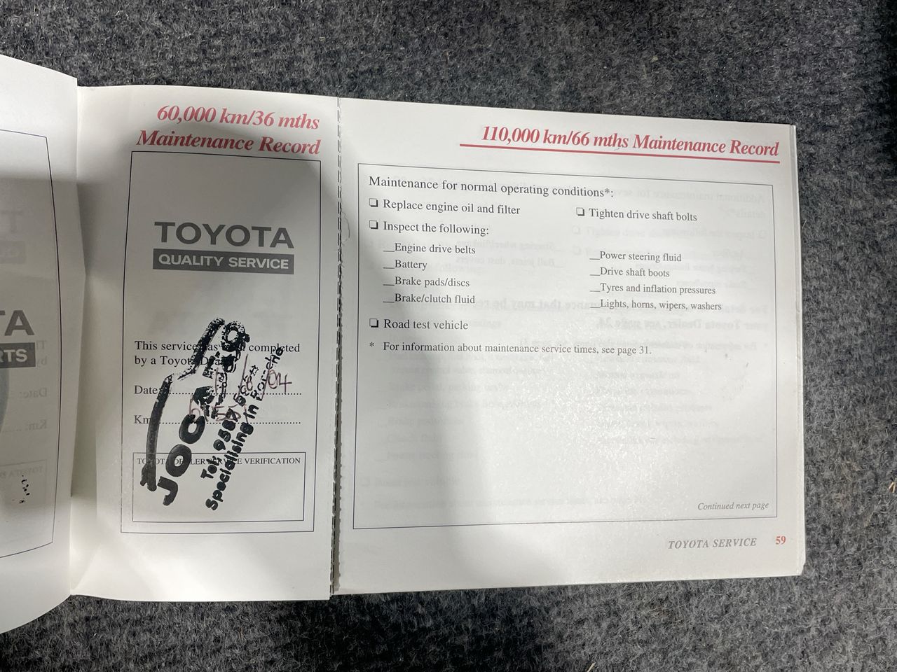 • Dents or marks on body consistent with age and kilometres.