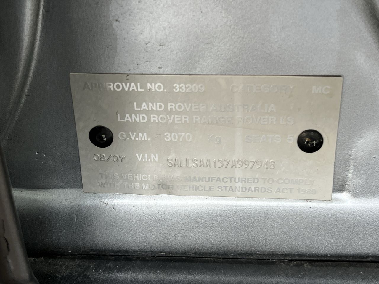 (SN:SALLSAA137A997948) (121234-7)
