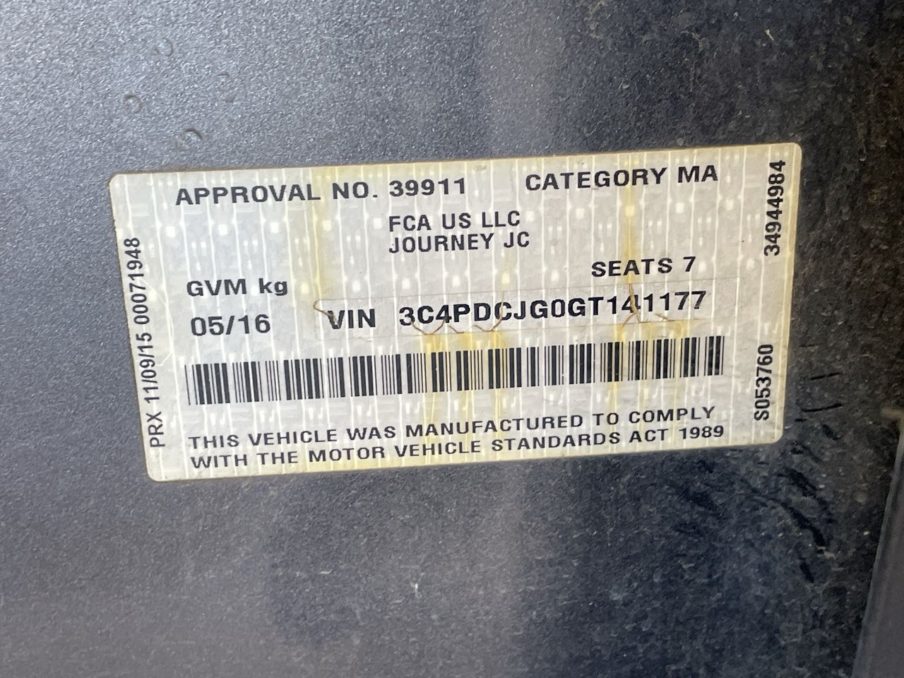 (SN:3C4PDCJG0GT141177) (107902-528)