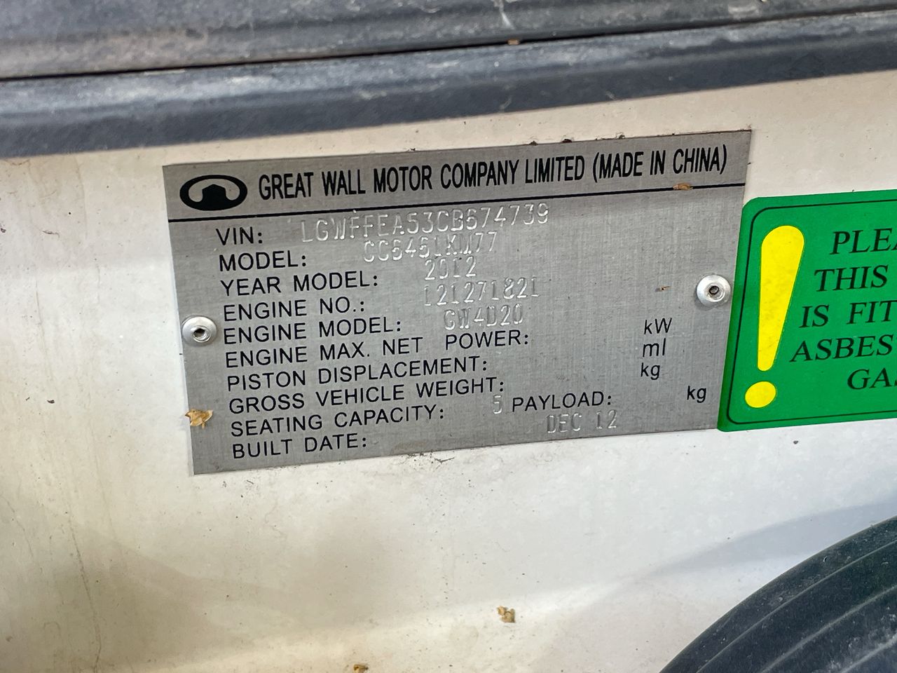 | Part of Sale | 2012 Great Wall X200 4X4 Turbo Diesel Manual Wagon | ||||||||||||||