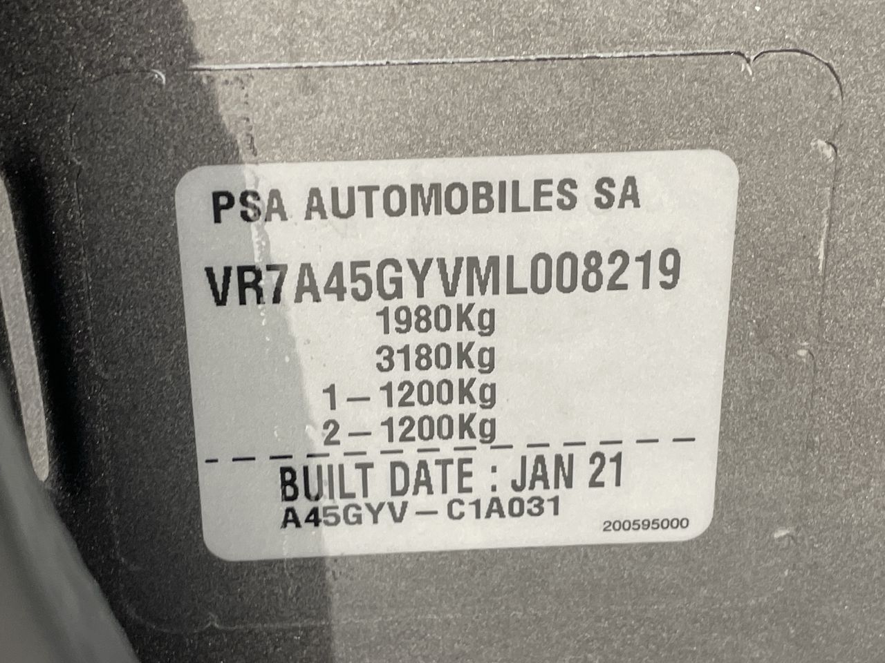 • VIN: VR7A45GYVML008219