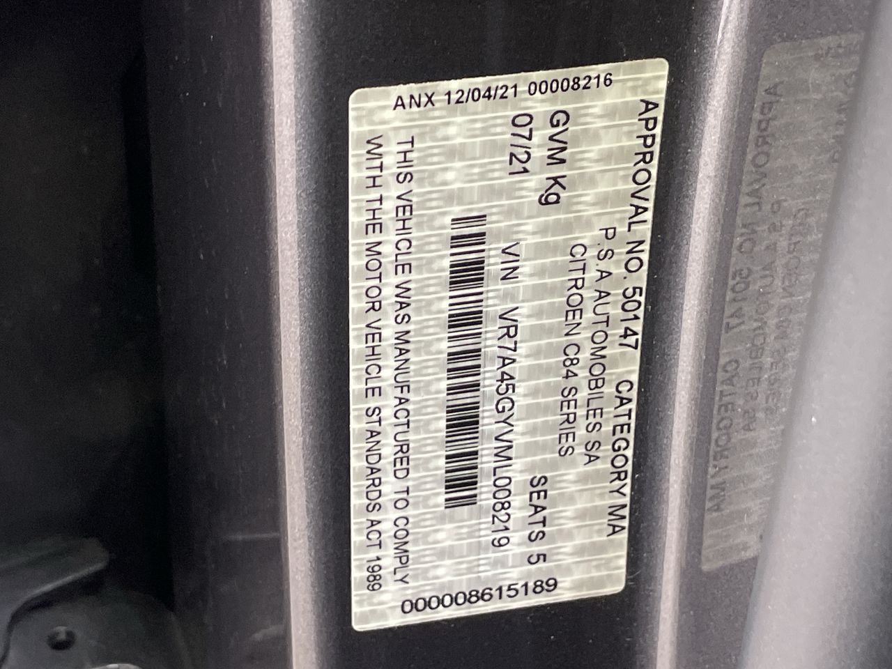 (SN:VR7A45GYVML008219) (124585-449)
