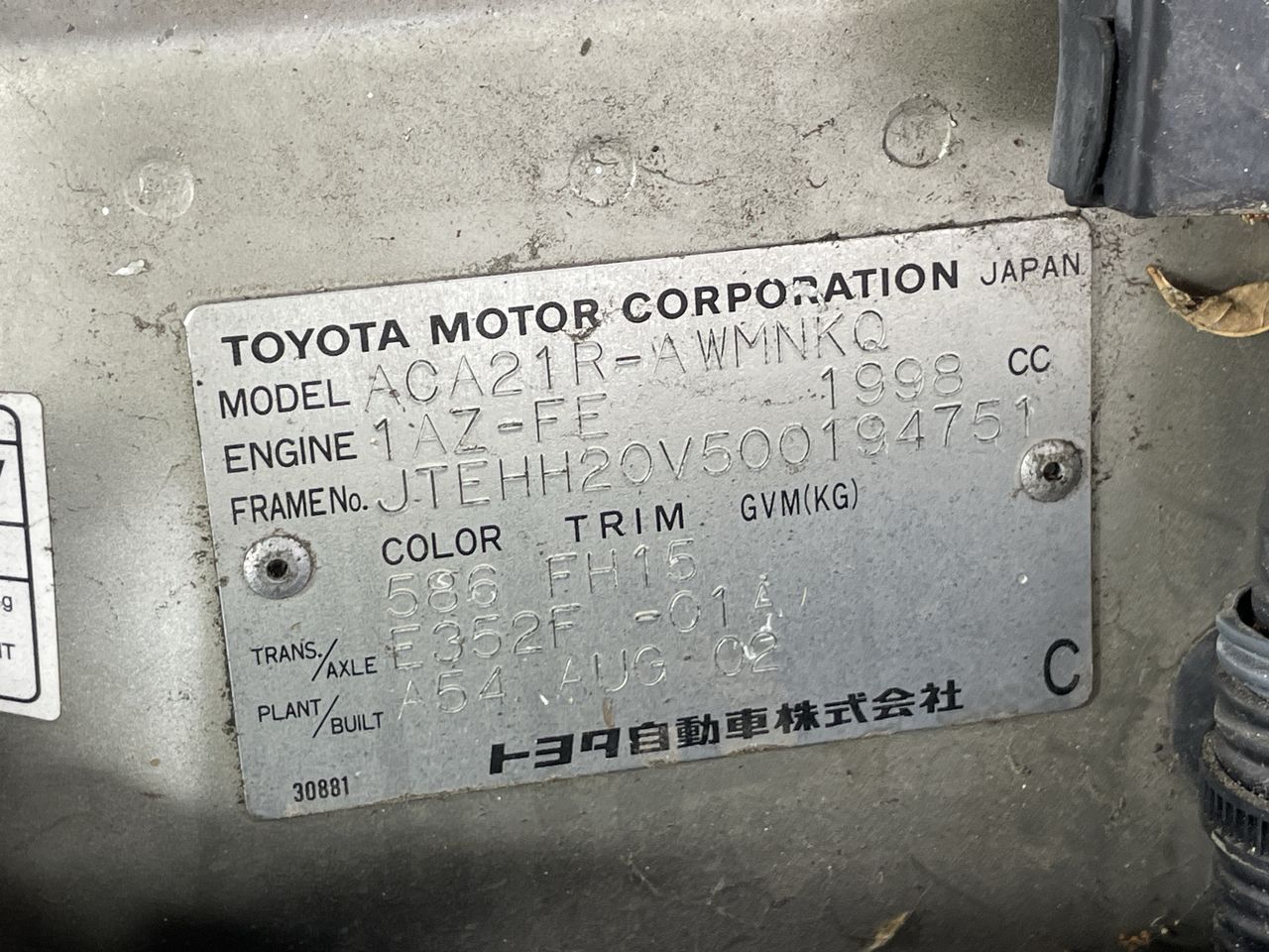 2002 Toyota Rav 4 CRUISER ACA21R Manual Wagon