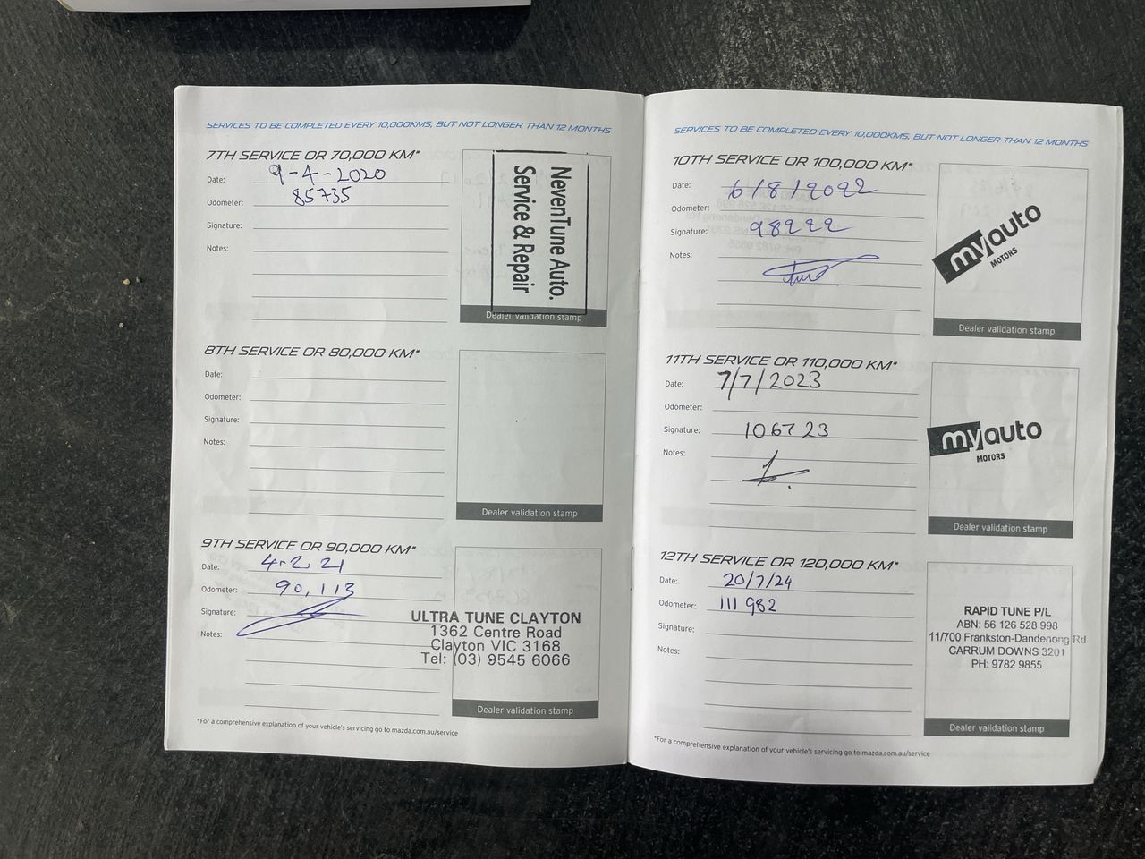 • Dents or marks on body consistent with age and kilometres.