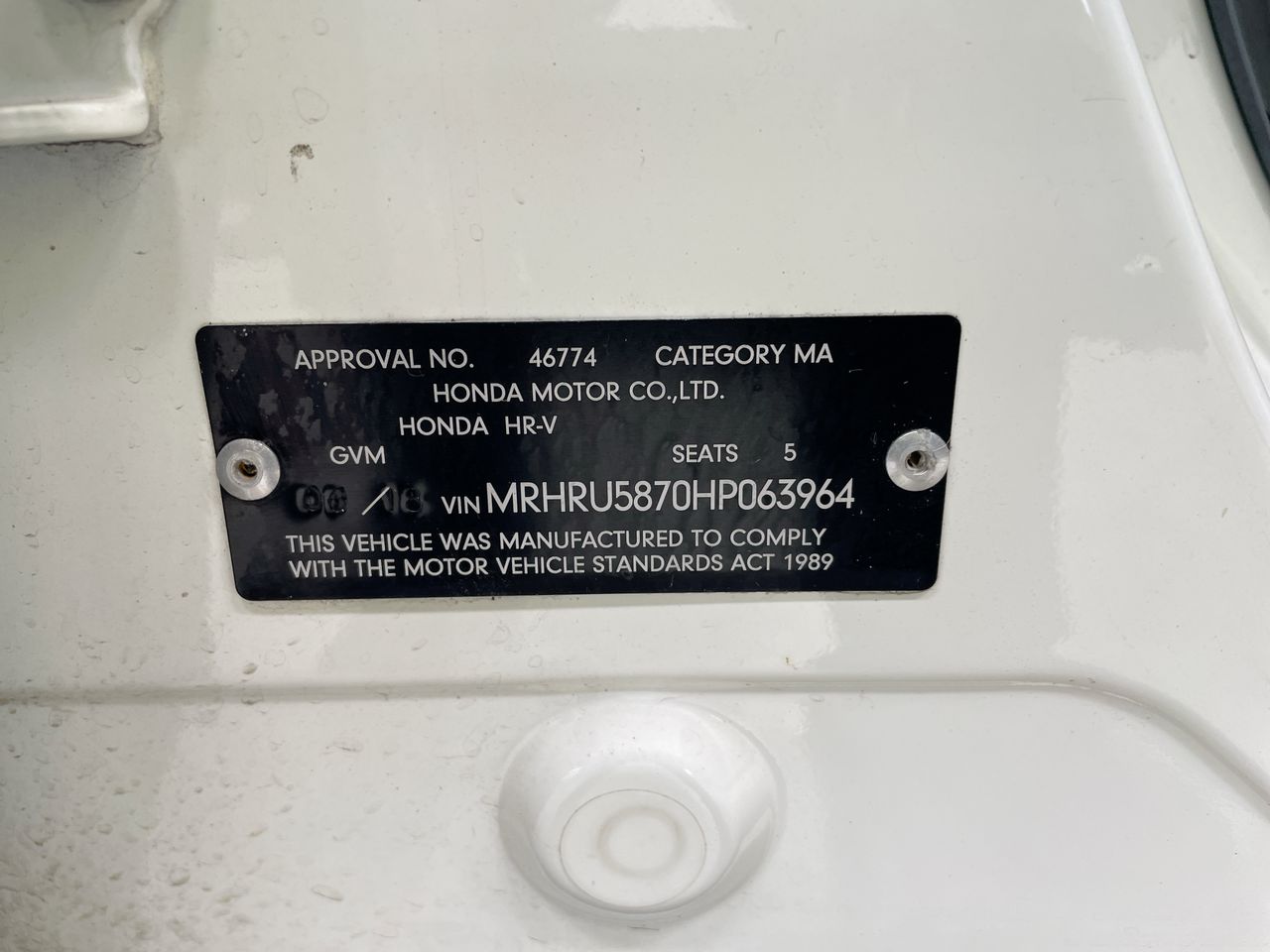 • VIN: MRHRU5870HP063964
