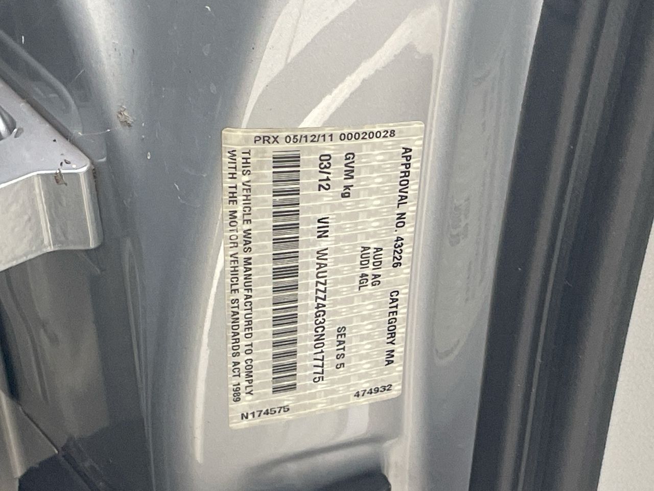 (SN:WAUZZZ4G3CN017775) (139347-1)