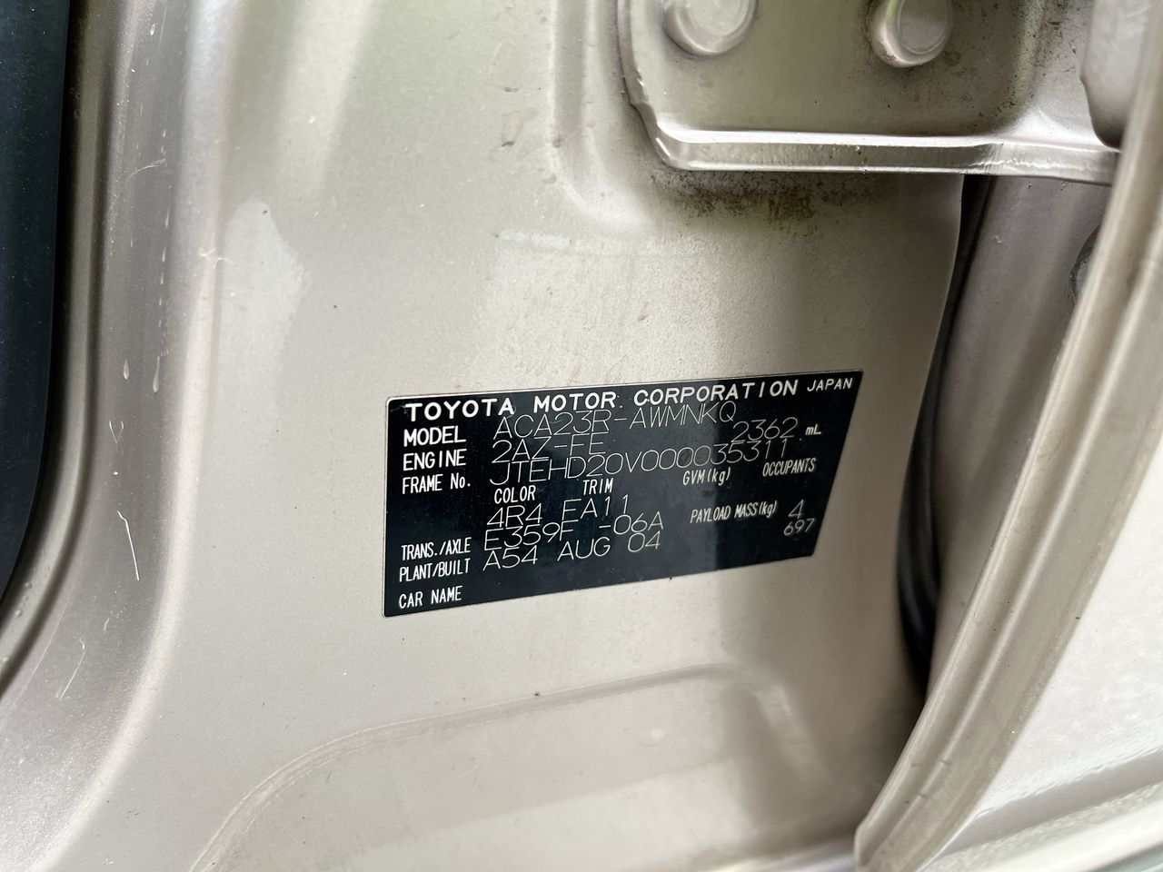 2004 Toyota Rav 4 CRUISER ACA23R Manual Wagon