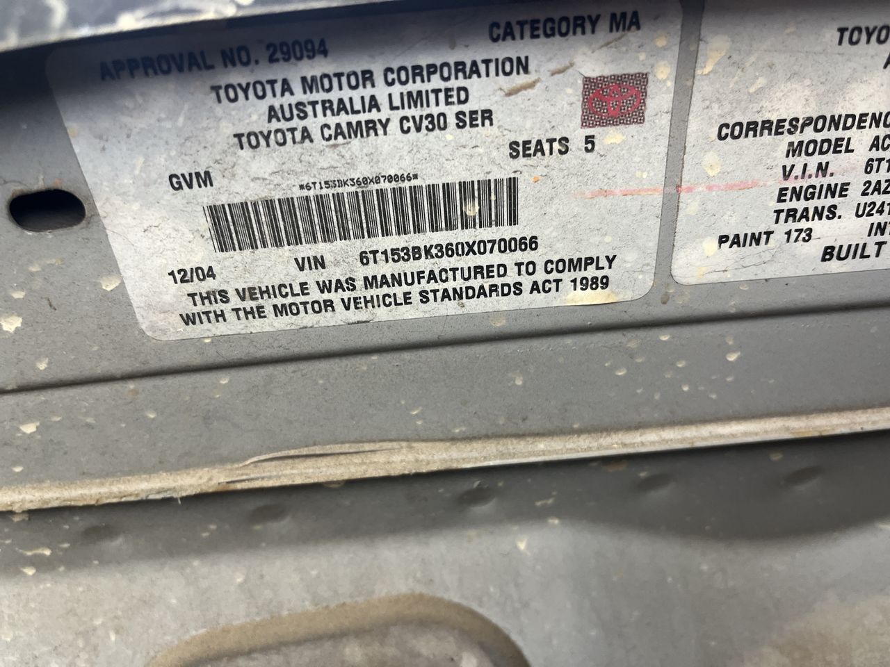 | Part of Sale | 2004 Toyota Camry Automatic Sedan | ||||||||||||||