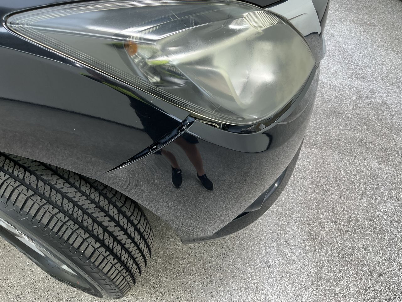 • Interior: Gear stick cover damaged, Exterior: Front bumper dislodged.