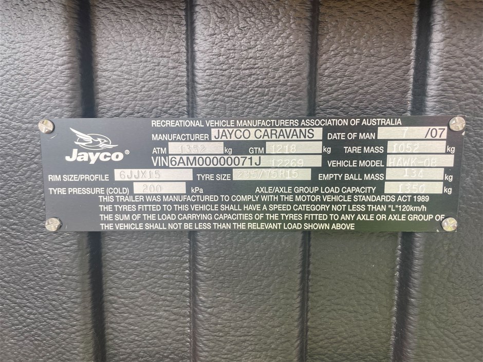| Part of Sale | 2007 Jayco Hawk OB Camper Trailer | ||||||||||||