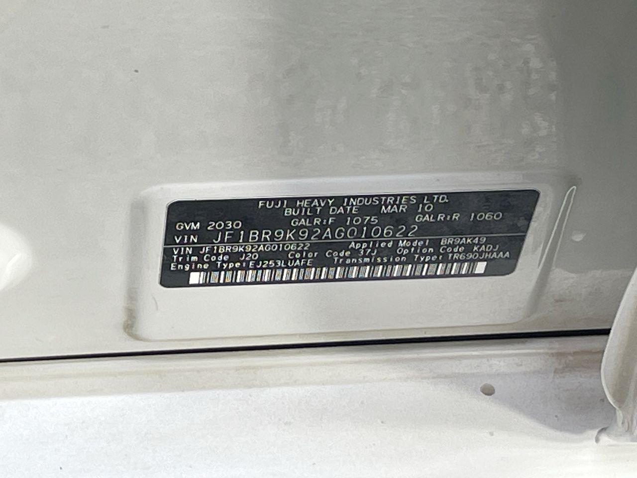 (SN:JF1BR9K92AG010622) (135466-385)