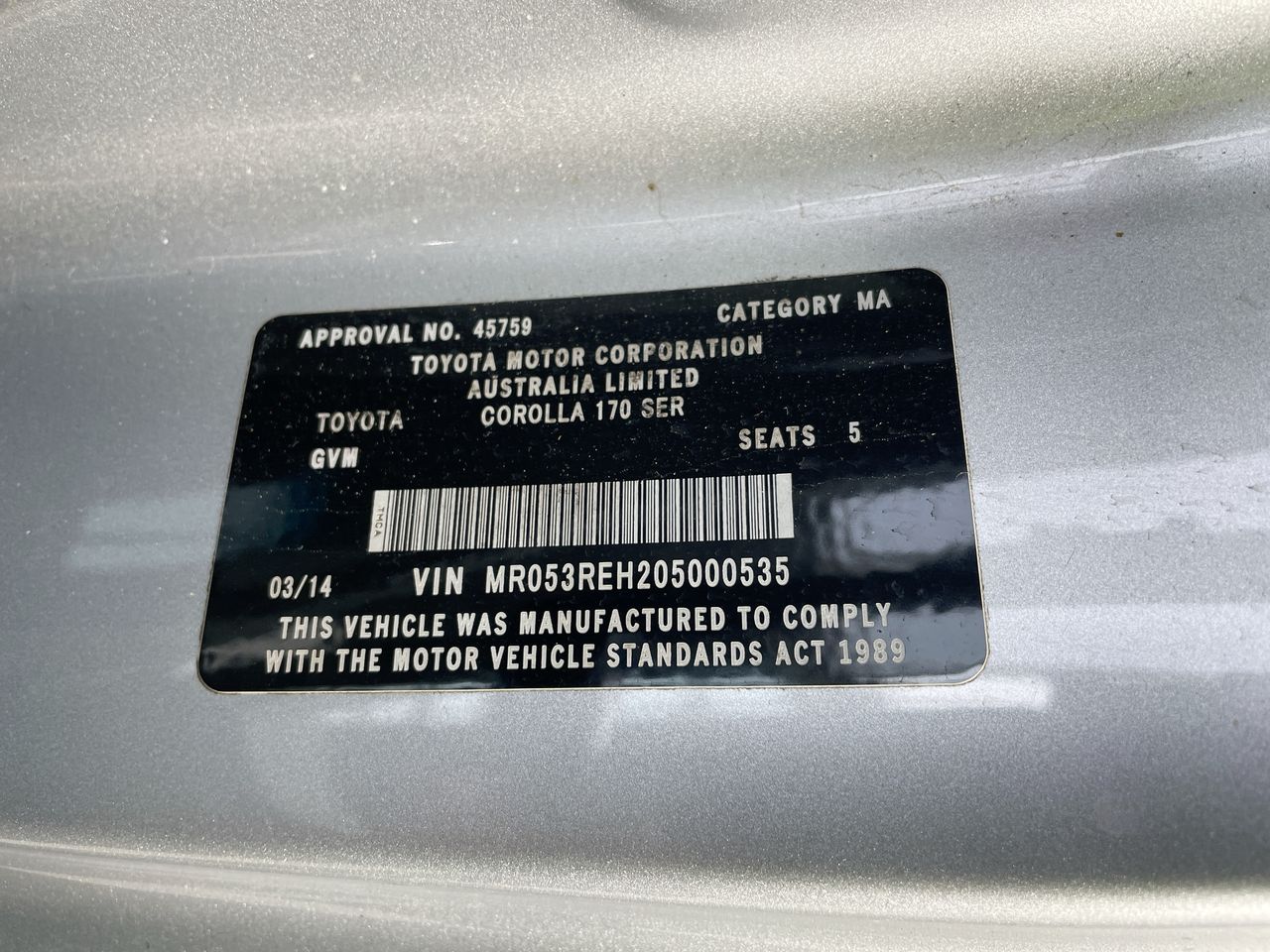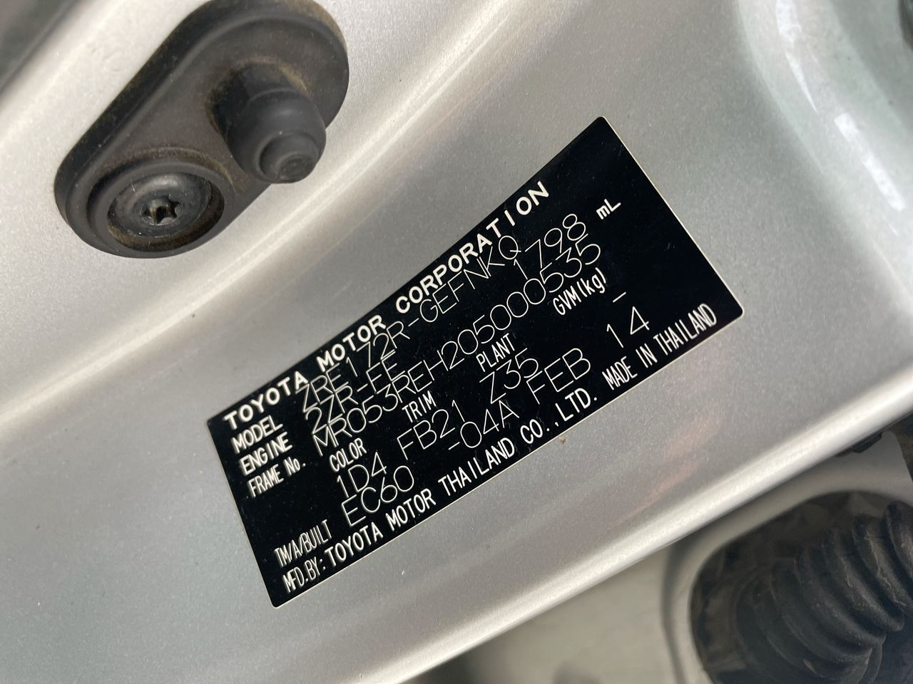 • VIN: MR053REH205000535