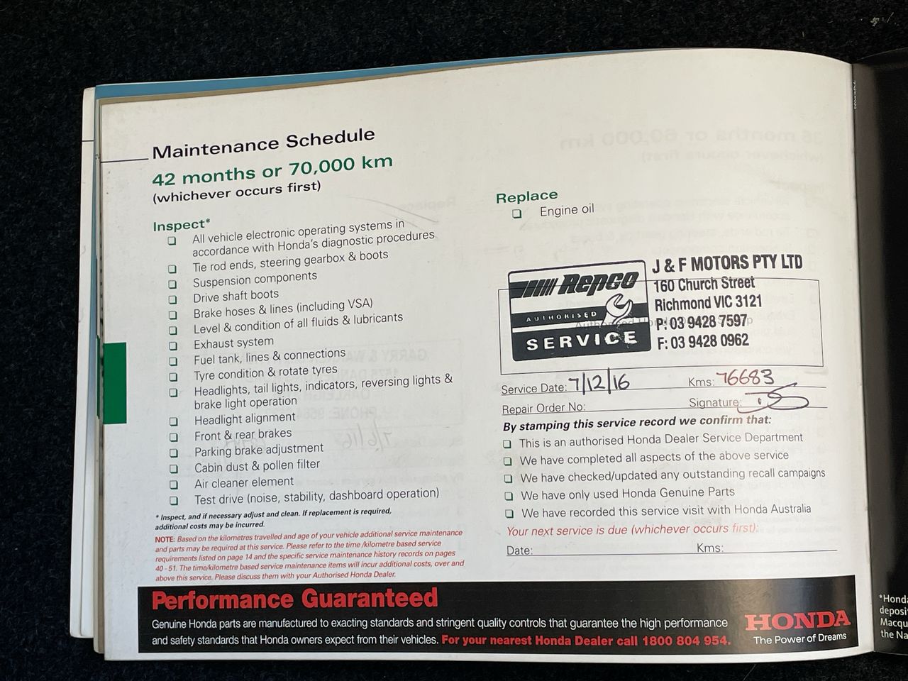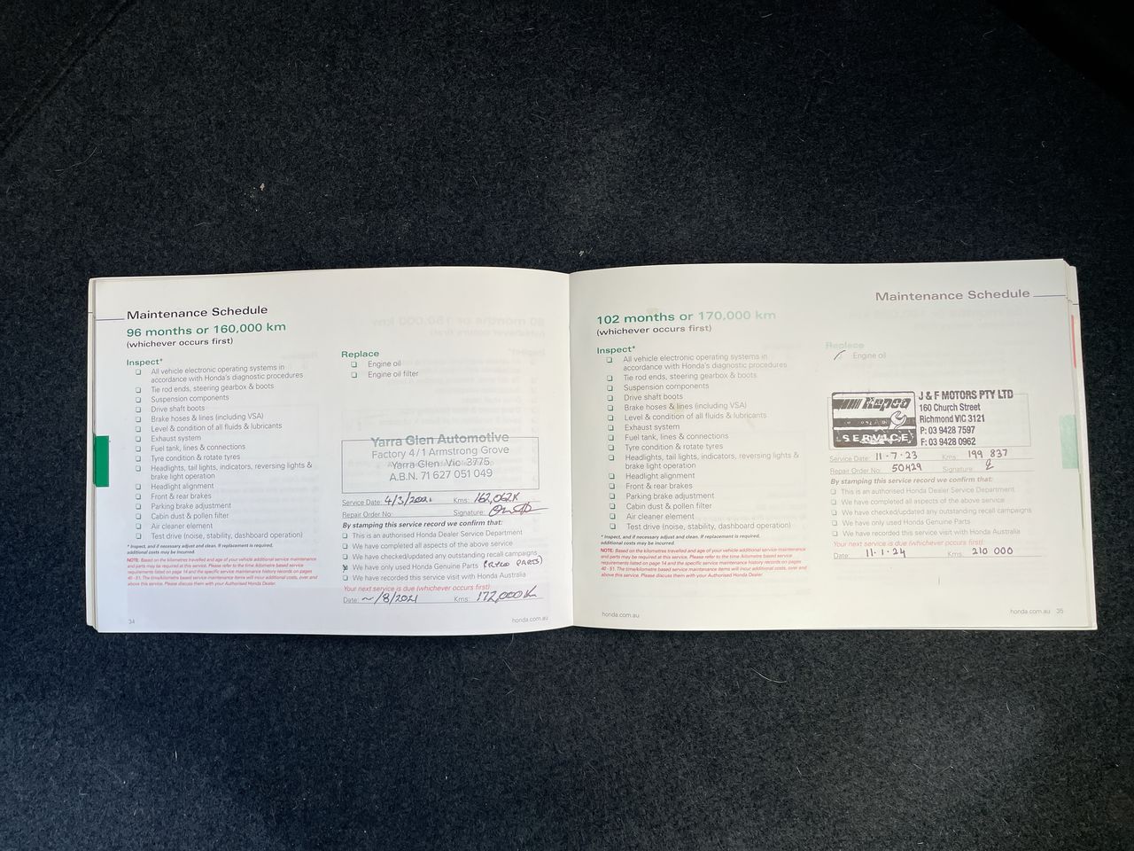 • Dents or marks on body consistent with age and kilometres.