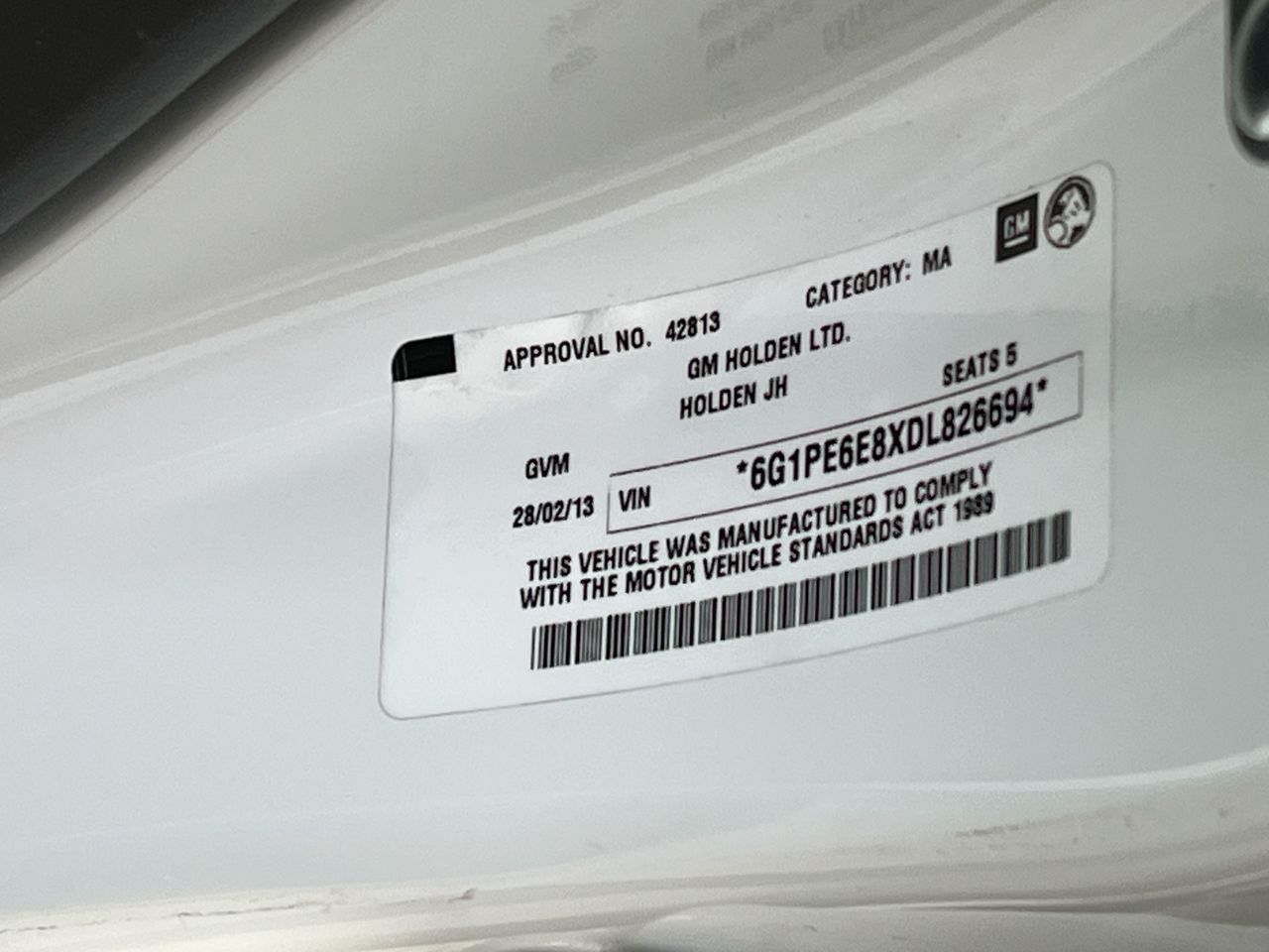 (SN:6G1PE6E8XDL826694) (135787-462)