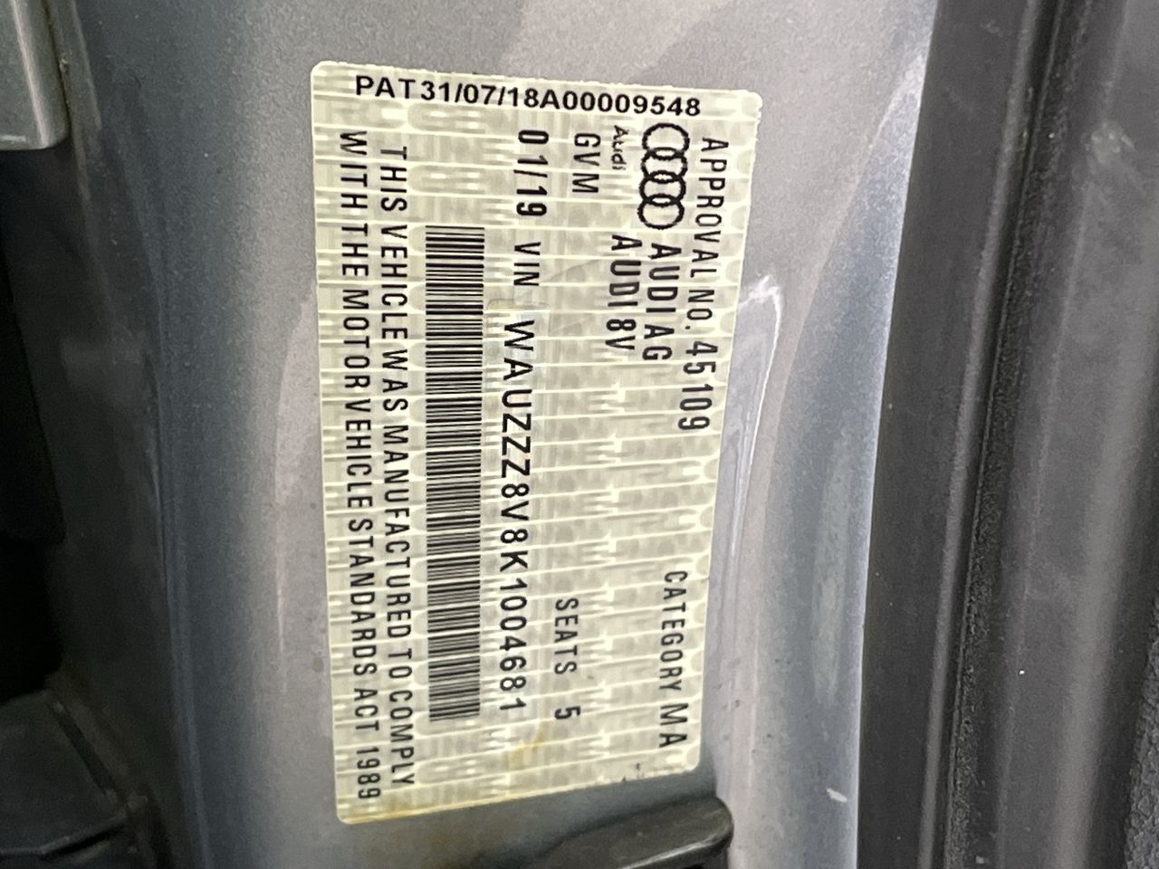 (SN:WAUZZZ8V8K1004681) (139375-1)