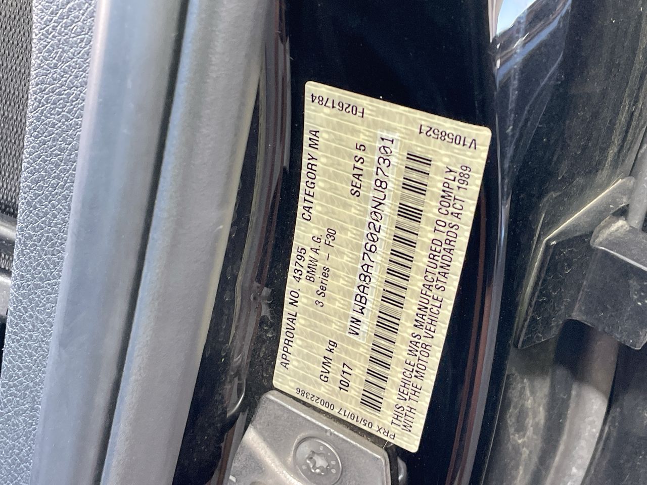 • VIN: WBA8A76020NU87301