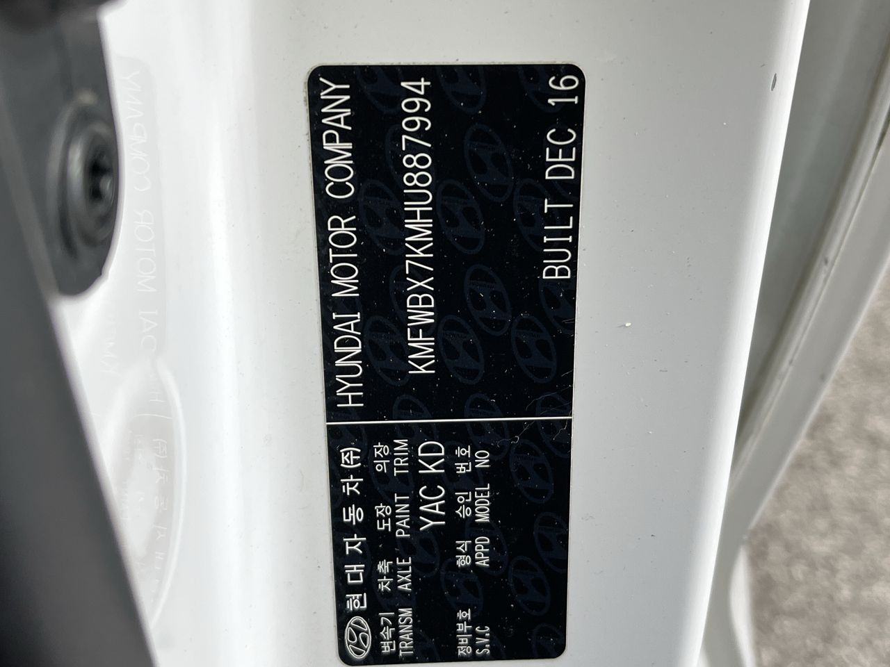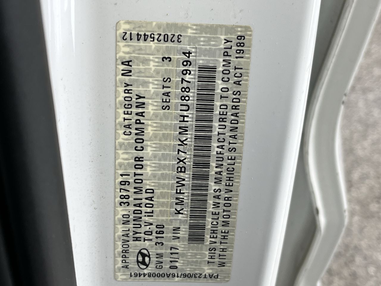 (SN:KMFWBX7KMHU887994) (135787-467)