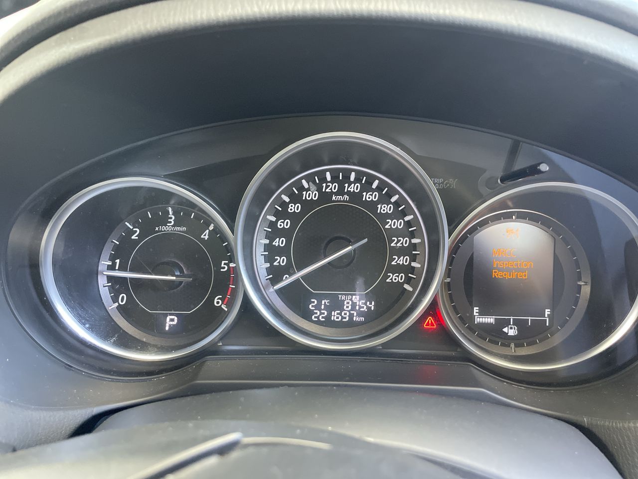 • Interior: MRCC Inspection Required indicated on the dashboard.