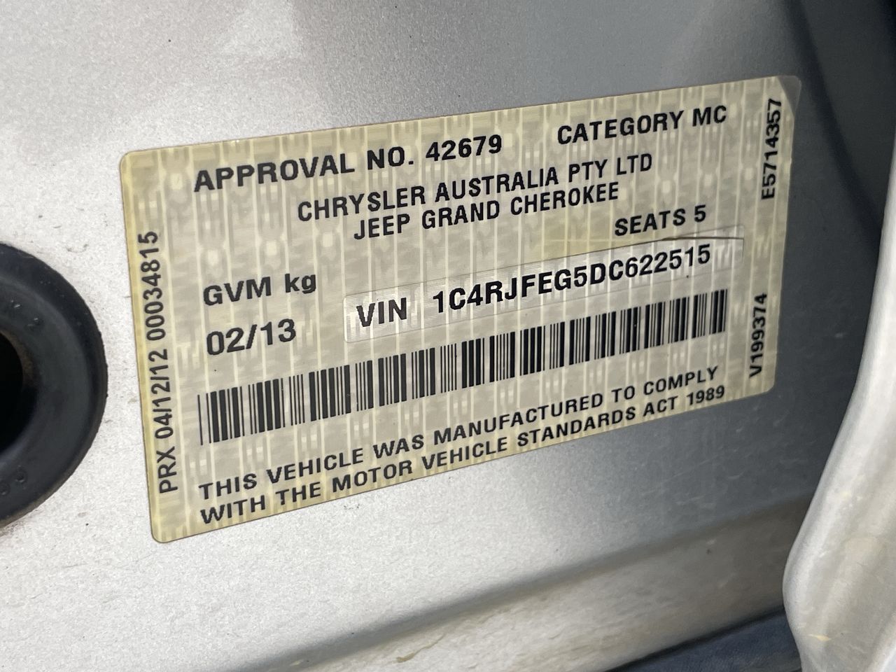 • VIN: 1C4RJFEG5DC622515