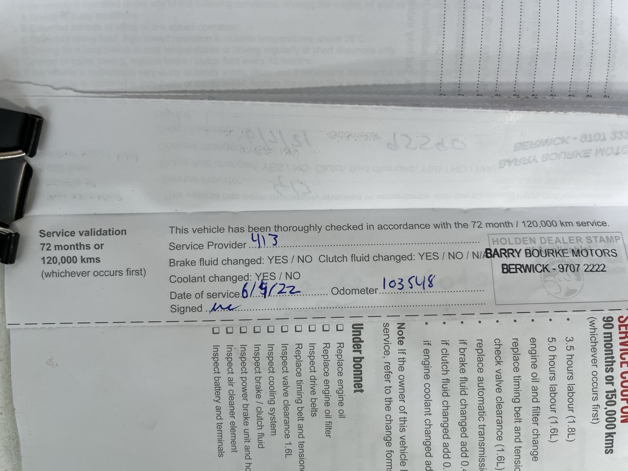 • Dents or marks on body consistent with age and kilometres.