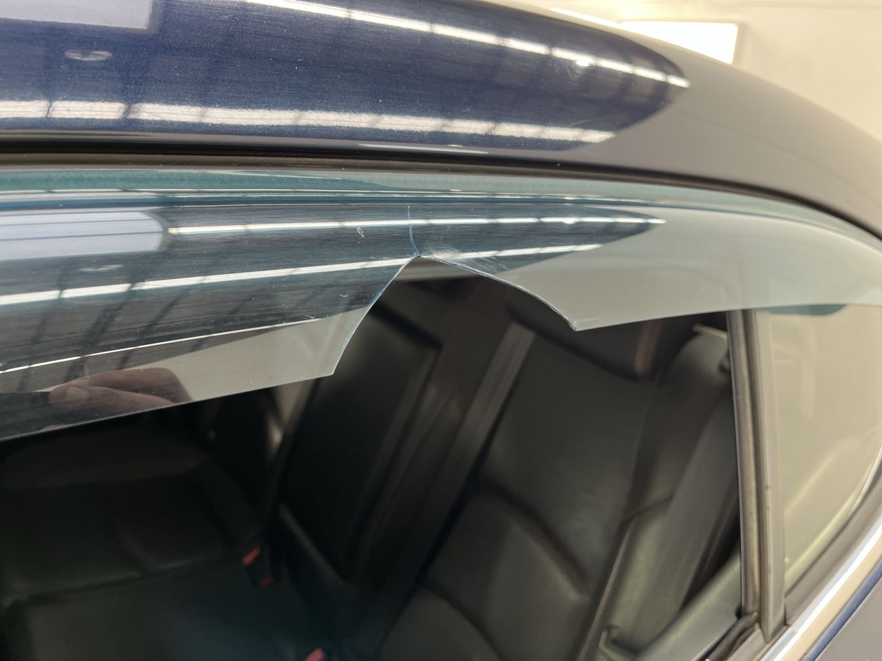 • Exterior: Broken window weather shield.