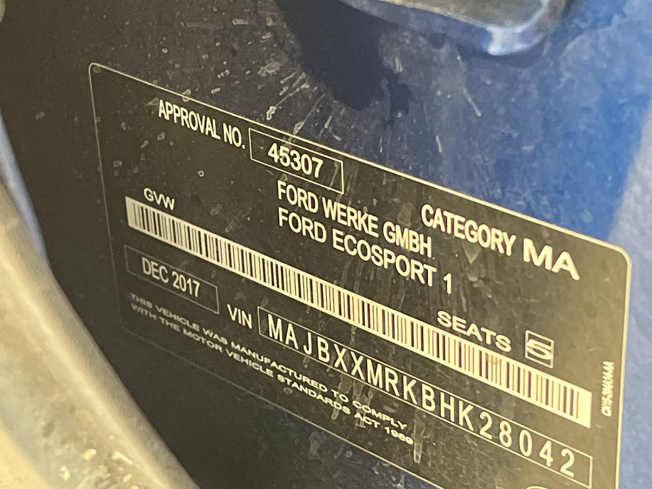 Part of Sale 2017 Ford Ecosport Ambiente BL Automatic Wagon